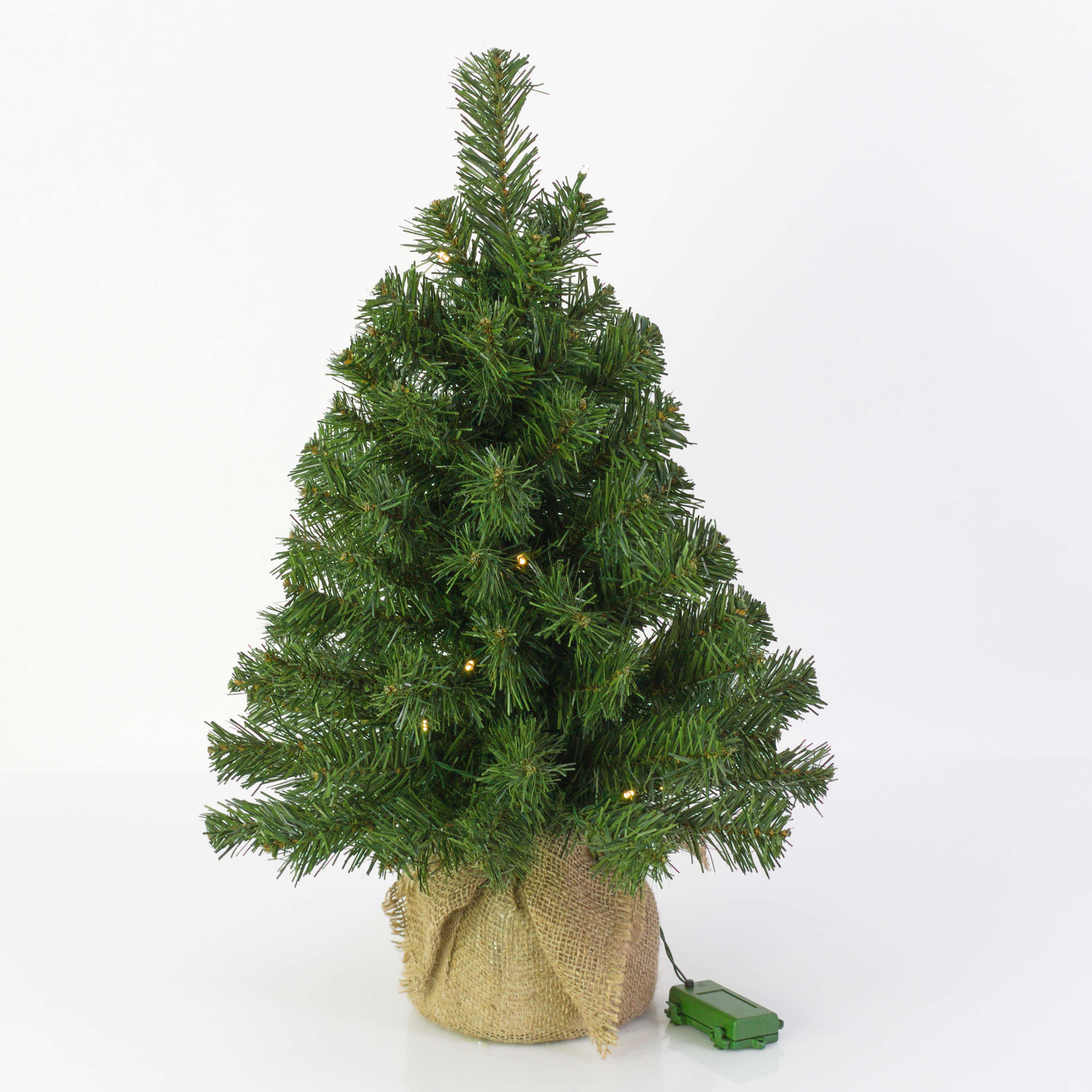 Plastový vánoční stromek WARSCHAU, jutový pytel béžová, LED diody, 60cm, Ø40cm