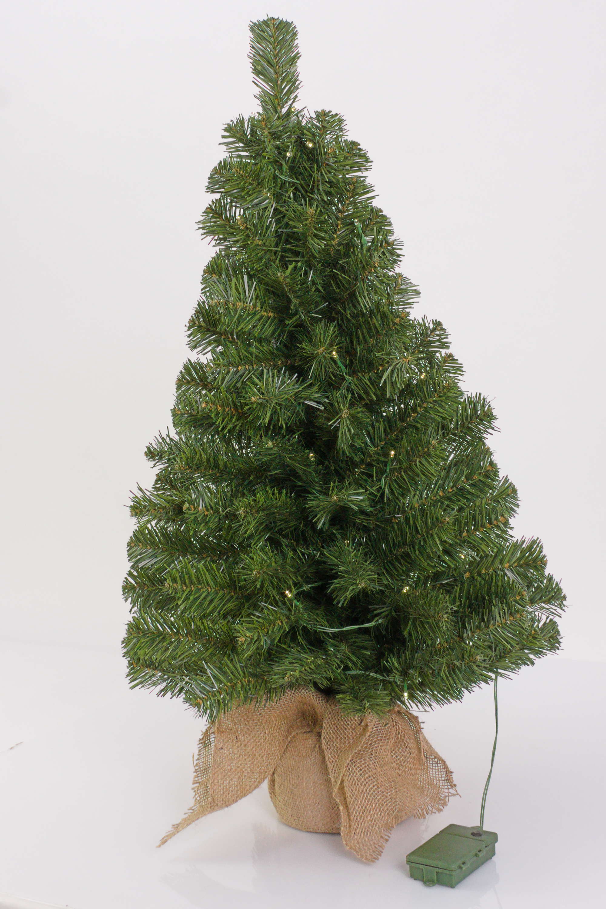 Plastový vánoční stromek WARSCHAU, jutový pytel béžová, LED diody, 90cm, Ø50cm