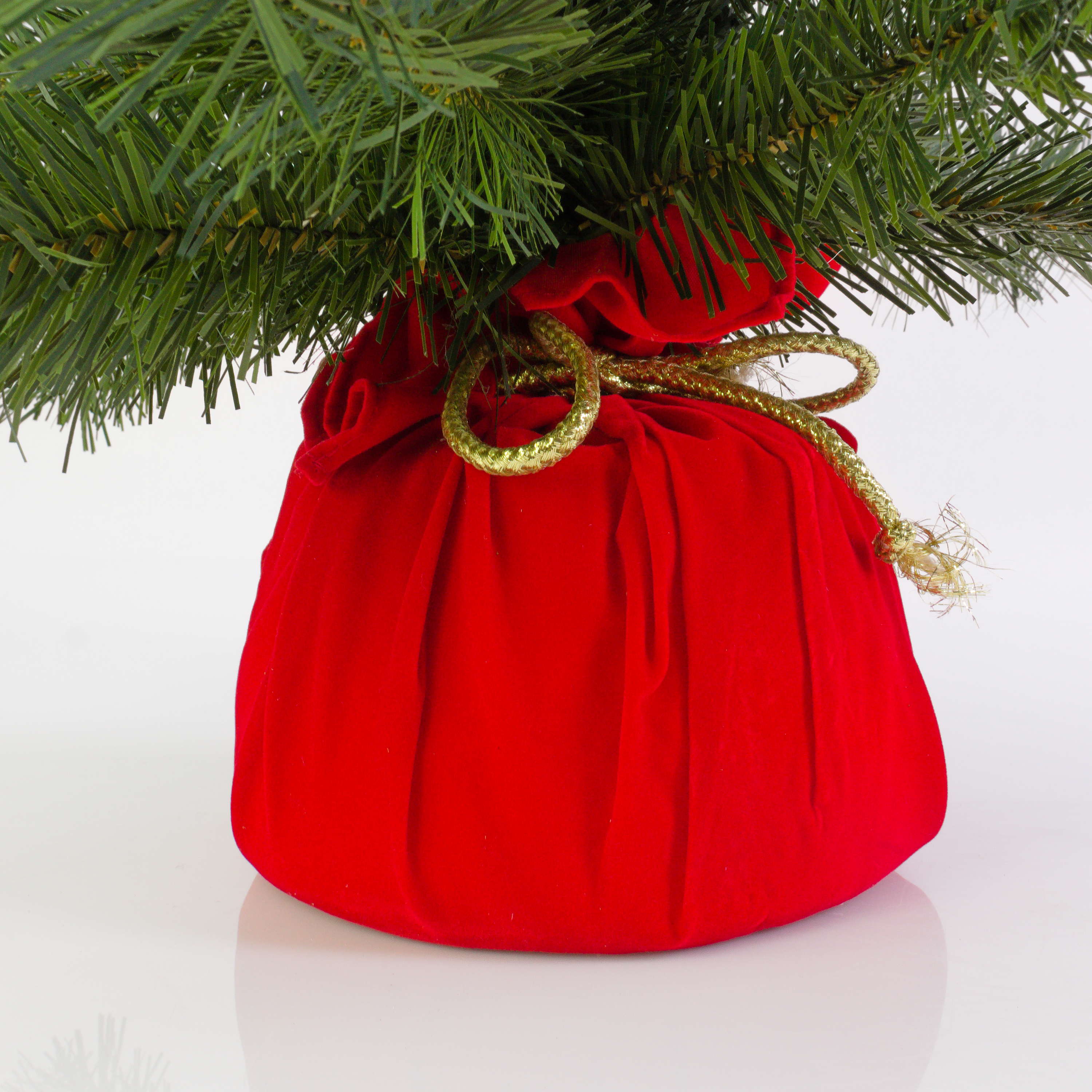 Plastový vánoční stromek WARSCHAU, jutový pytel červená, 90cm, Ø50cm