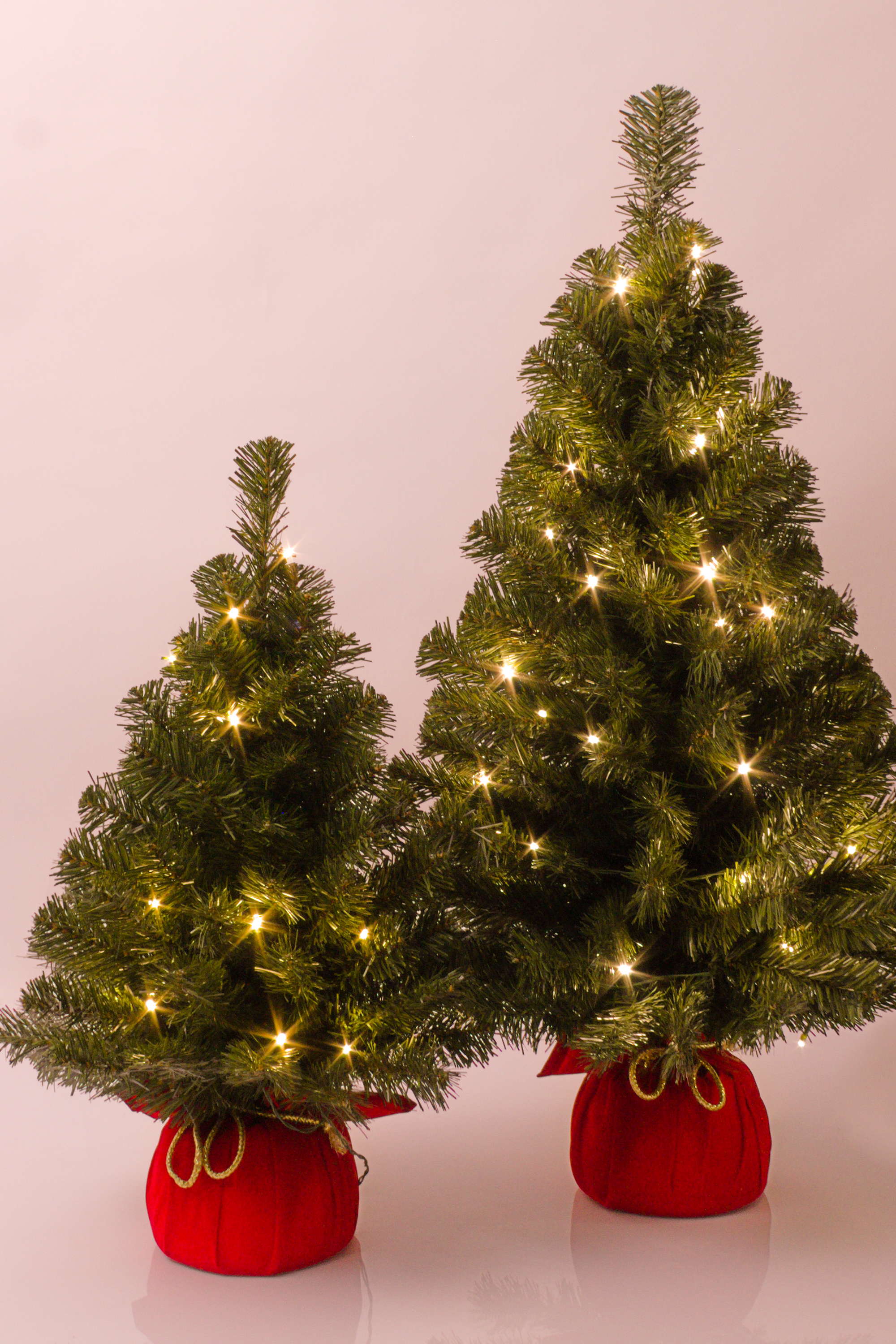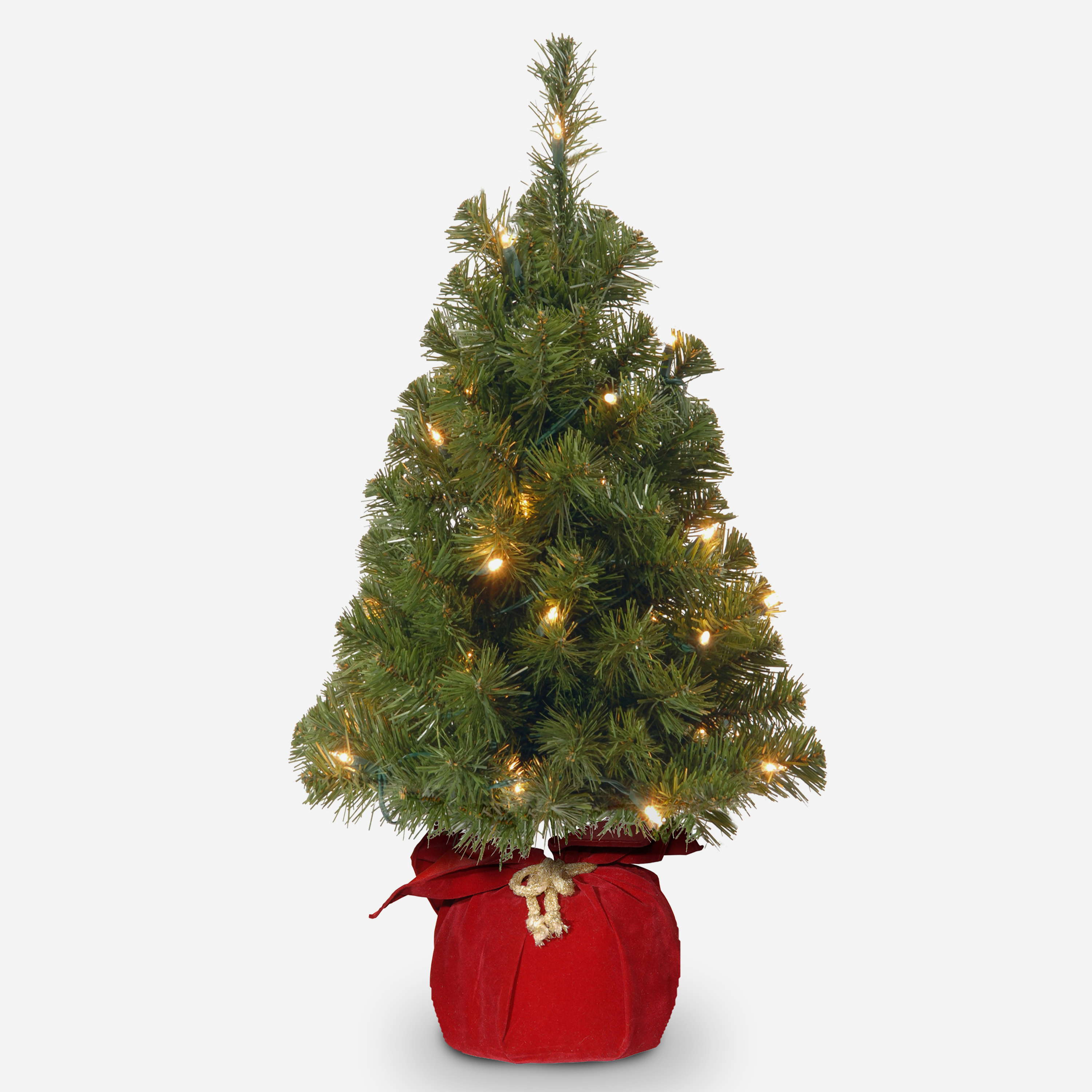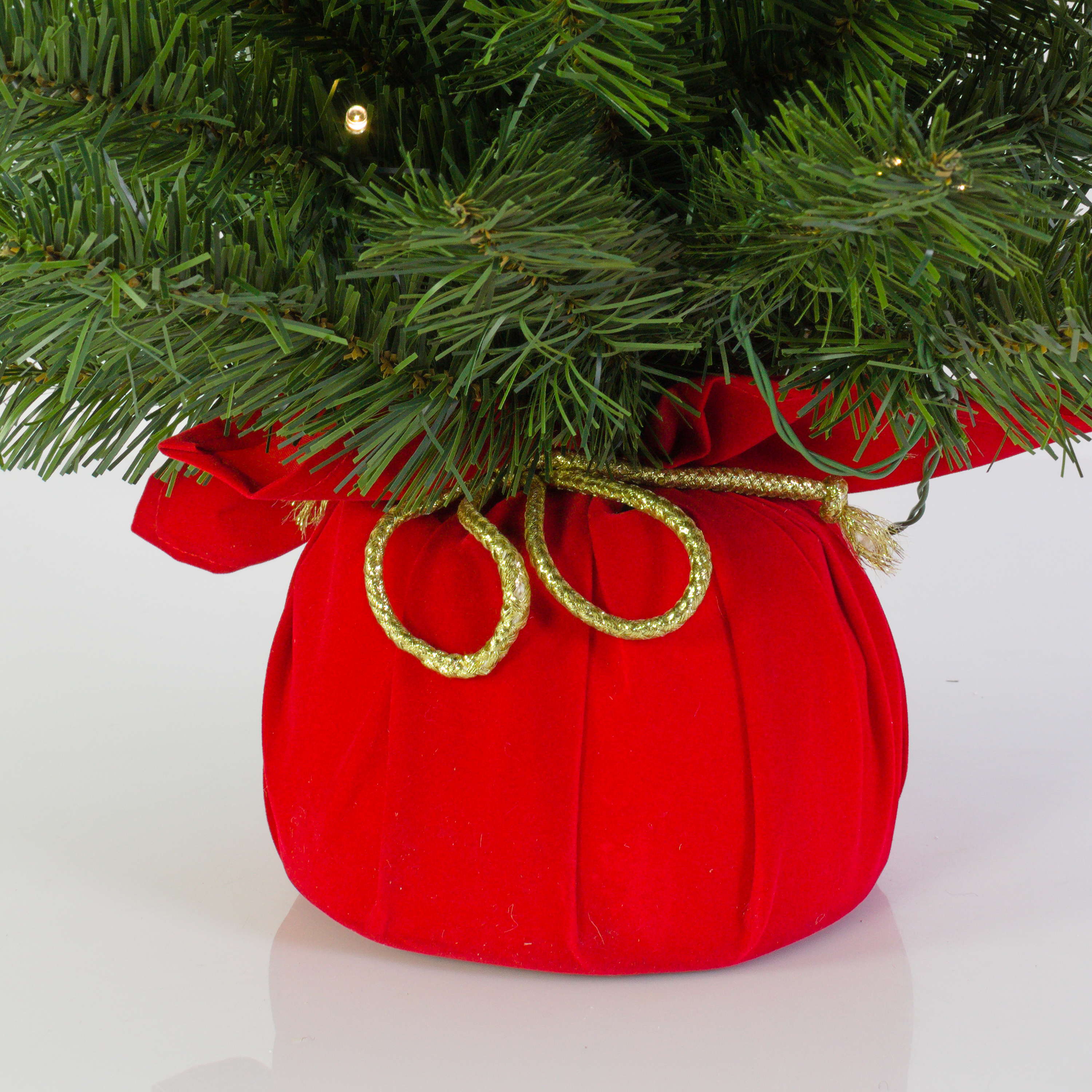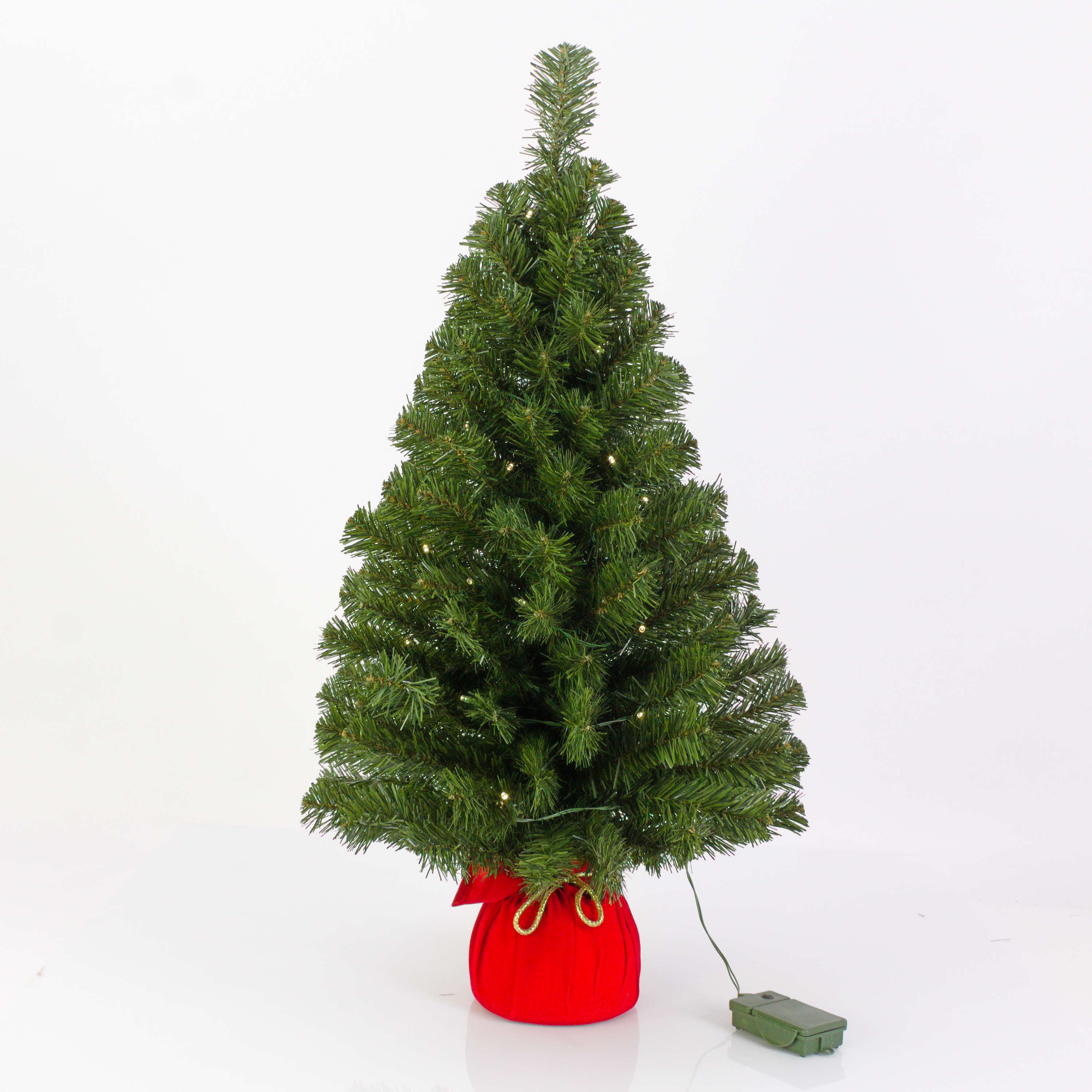 Plastový vánoční stromek WARSCHAU, jutový pytel červená, LED diody, 90cm, Ø50cm