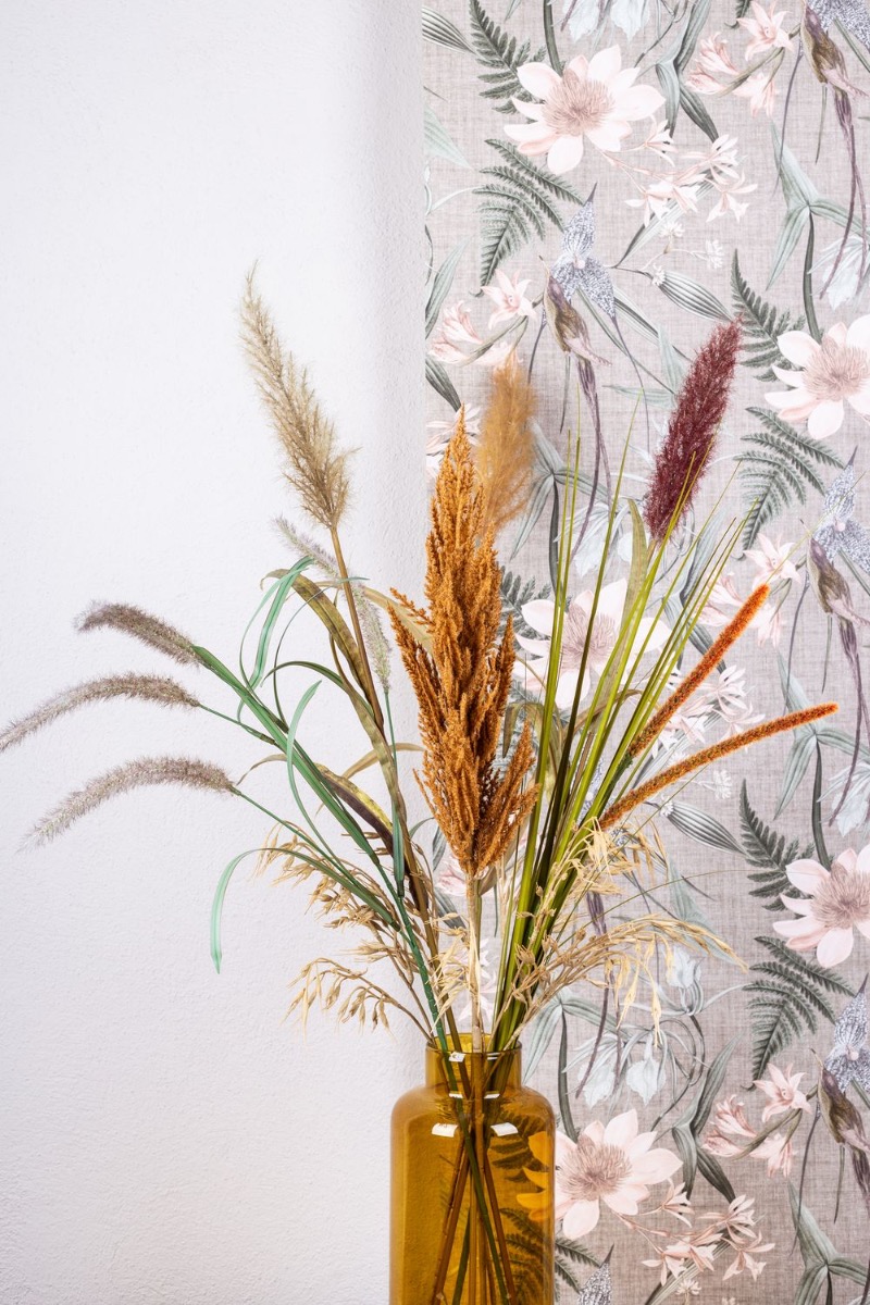 Designový tip: Trávy do vázy umístěte podle svých představ. Ořezávání zde není nutné, protože různé výšky vytvářejí přirozený, elegantní efekt.