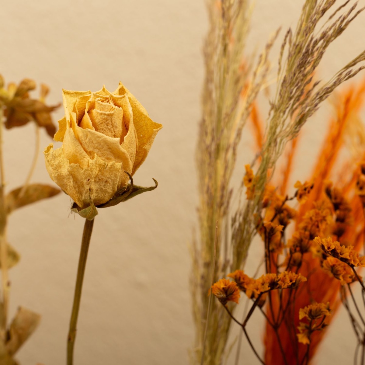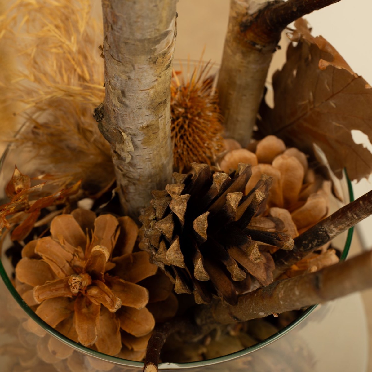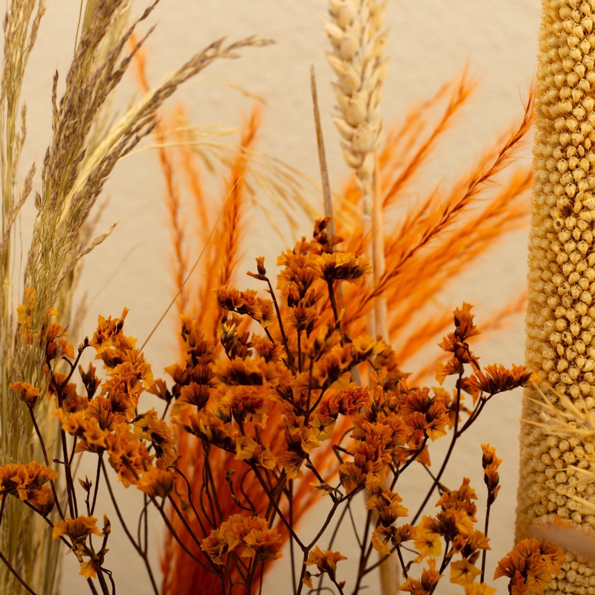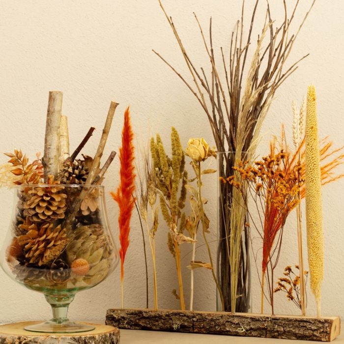 Podzim září! Dnes vám konečně ukážeme vzhled z naší všestranné nabídky přírodních dekorací. Sušené květiny, plody stromů a větvičky se opravdu skvěle hodí pro vnesení podzimu do domácnosti. Aranžmá ze sušených květin s jasně oranžovými prvky je prostě krásné na pohled a vnáší barvy do někdy šedivého ročního období. Nakupte si tento vzhled!