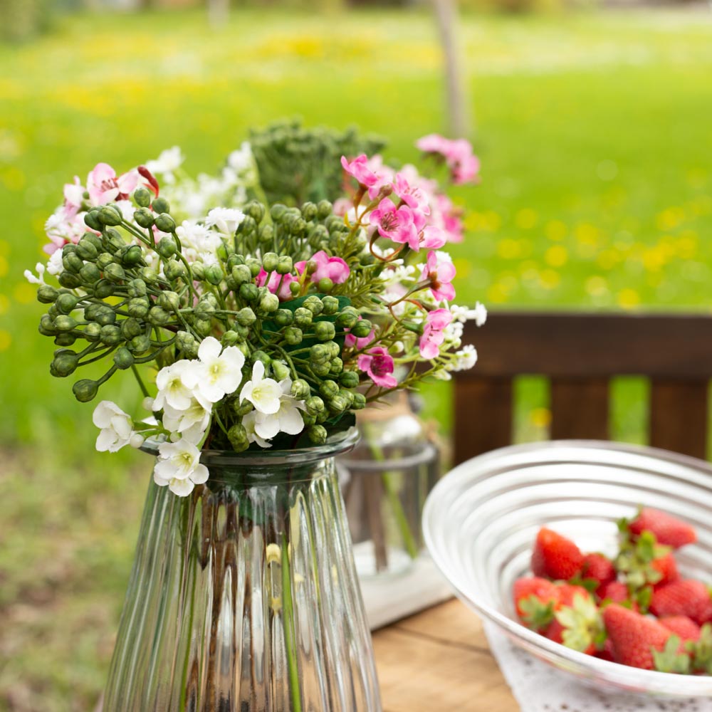 Vellumové svíčky a luční kvítí! Pokud máte zahradu, určitě se v létě těšíte na skvělé večírky s přáteli a příbuznými. Samozřejmě se neobejdete bez nějaké výzdoby. Jemné luční květy, jako jsou sedmikrásky, baby´s breath a voskovky, dodají tomuto časně letnímu vzhledu romantický a venkovský efekt. Stejně jako četné láhve ve vintage designu. Skvěle se hodí pro design pod krásným stromem. Nakupte si tento vzhled!