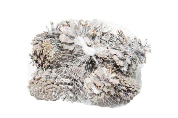 Rozsypané dekorační borovicové šišky UMBRIELLE, bělené, 15 kusů