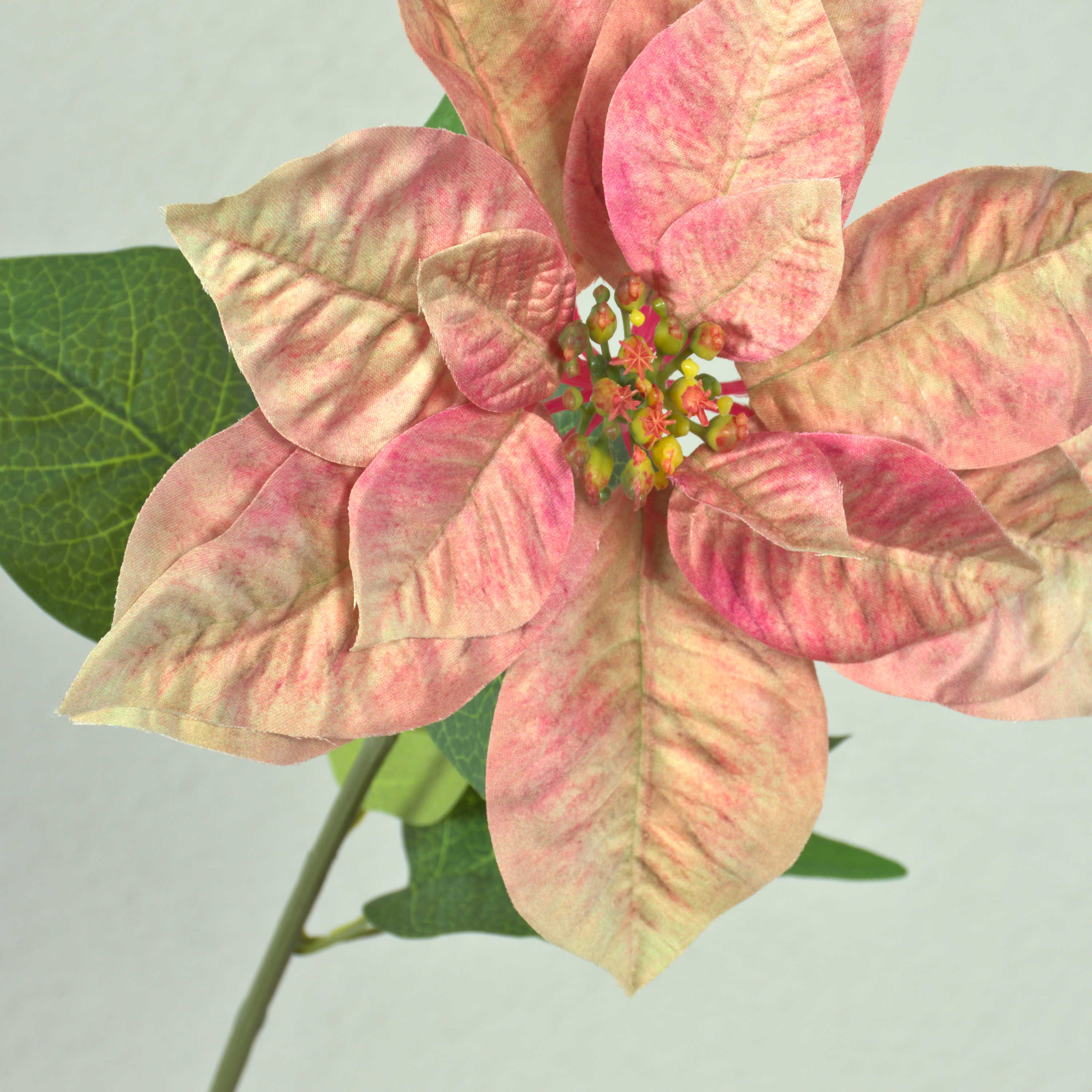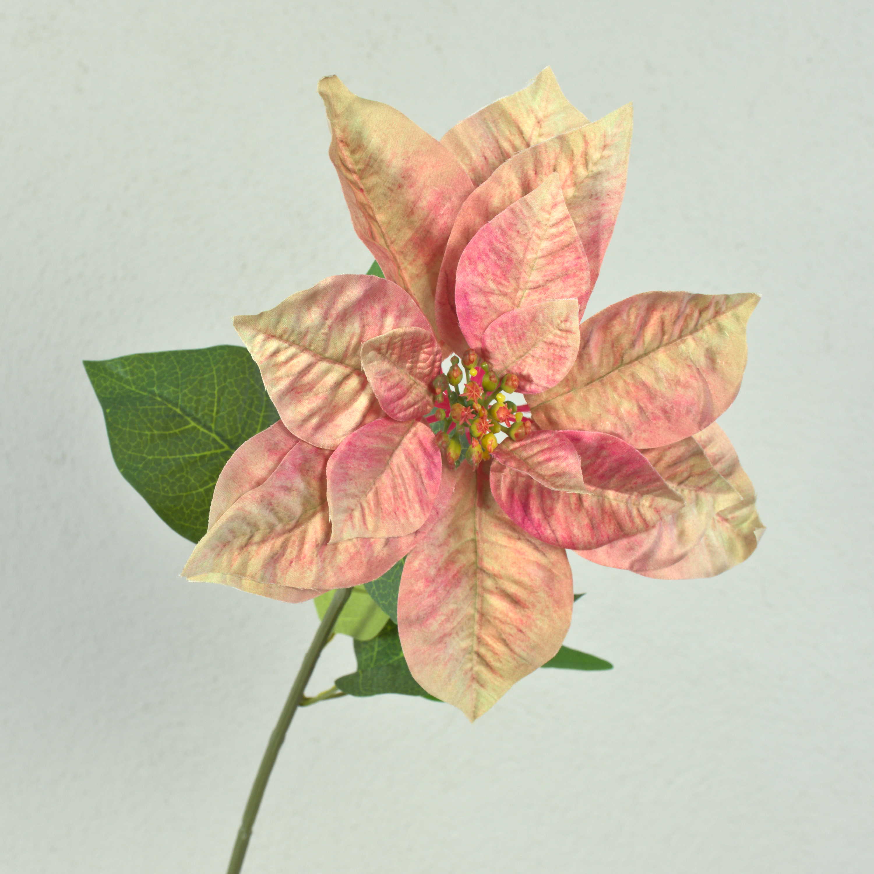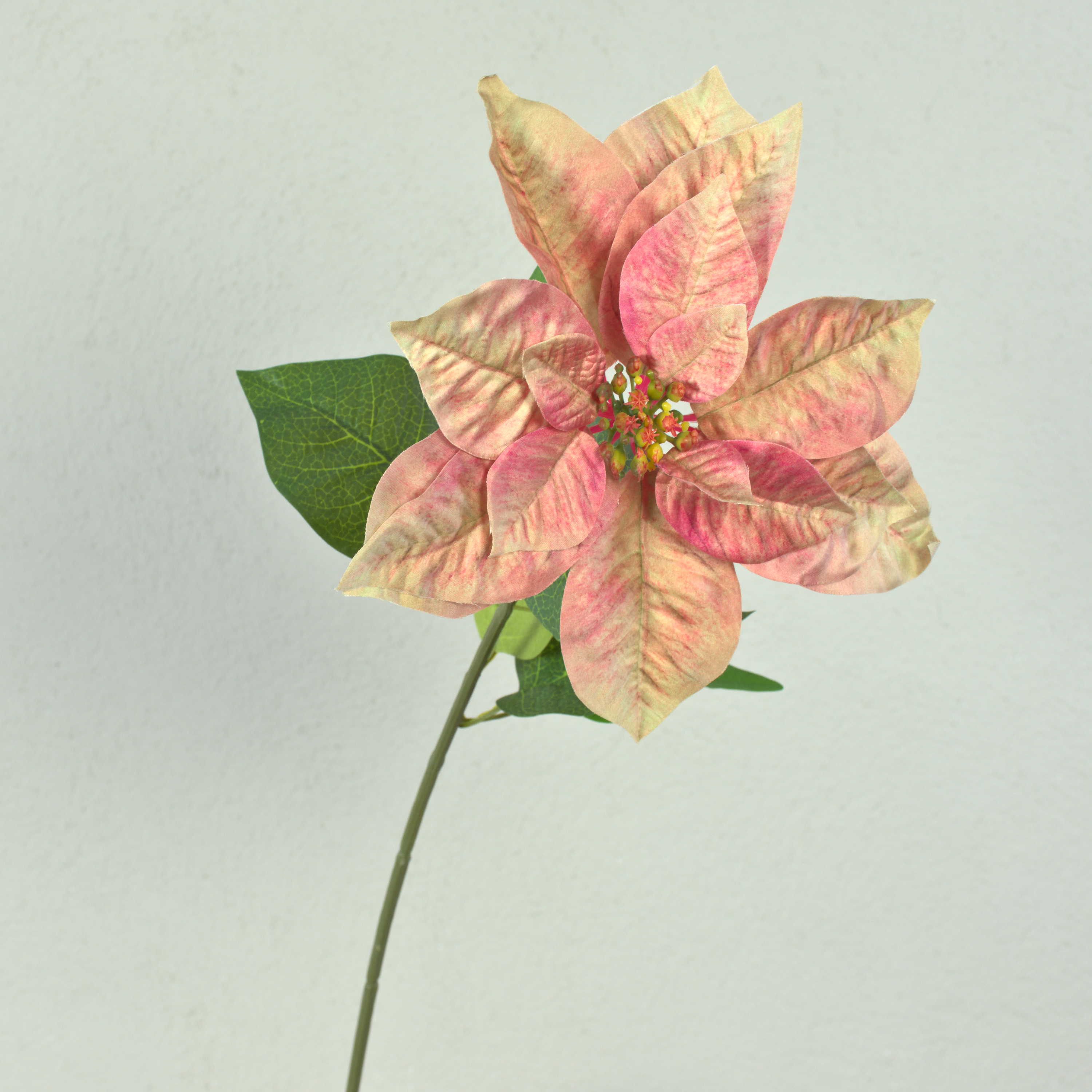 Sametová poinsettie LIBASSE, krémově růžová, 65cm