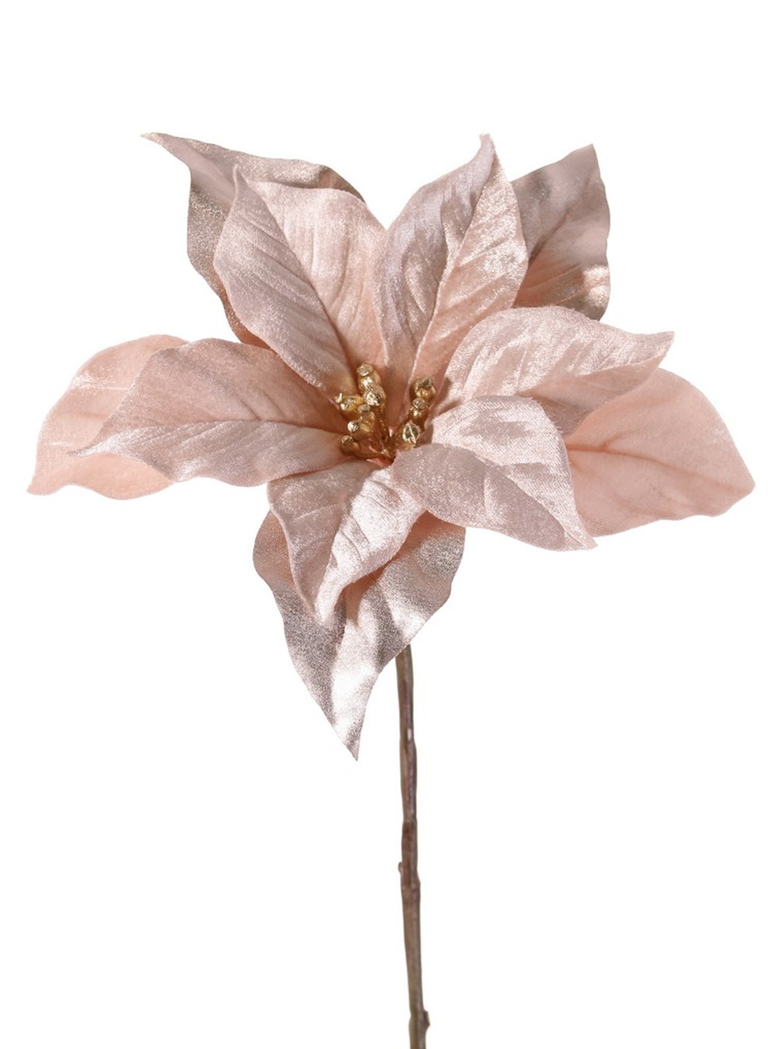 Sametová poinsettie SHEBA, béžovo-růžová, 55cm, Ø23cm