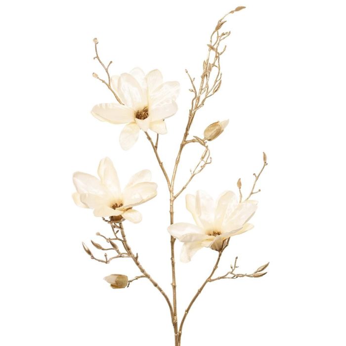 Sametová větev magnólie LEAFY, krémově zlatá, 115cm