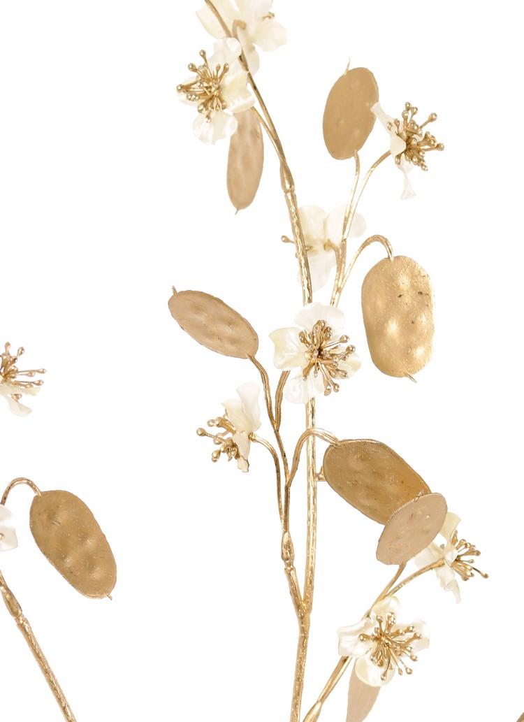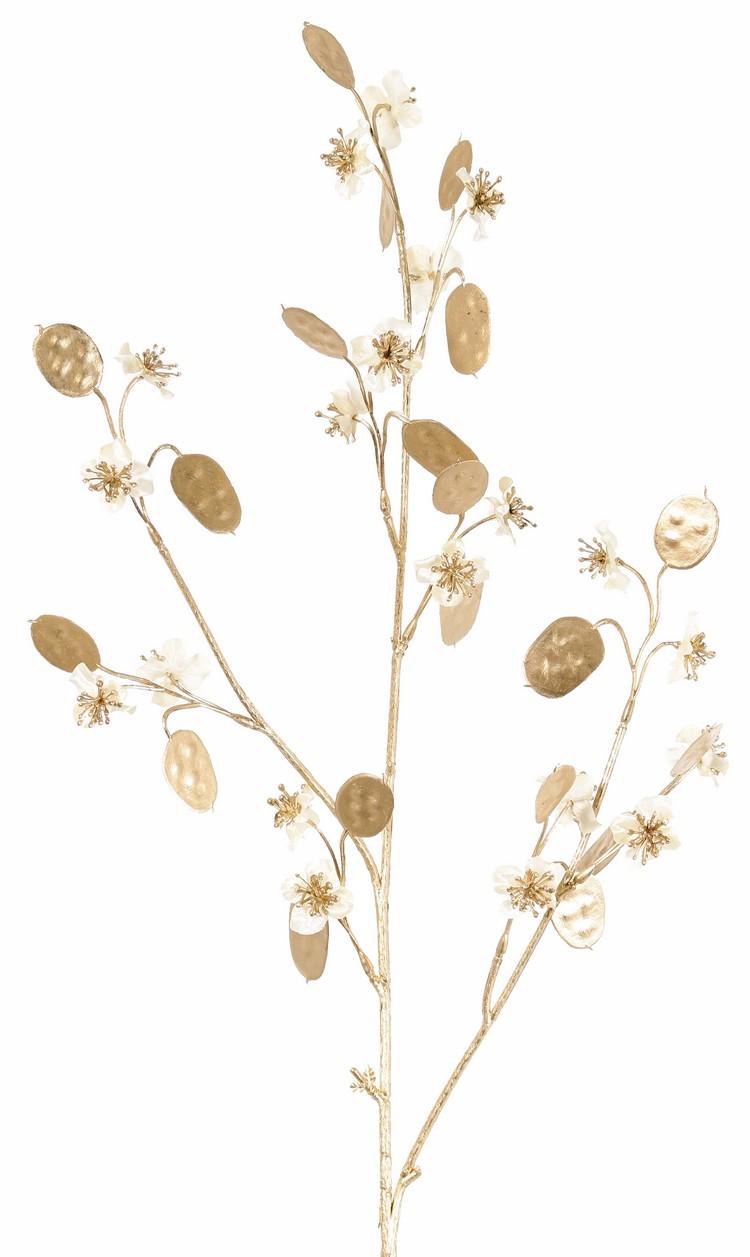 Saténová větvička lunárie PINDUS s květy, bílo-zlatá, 85cm