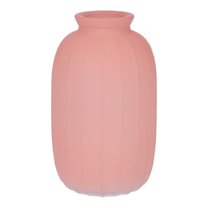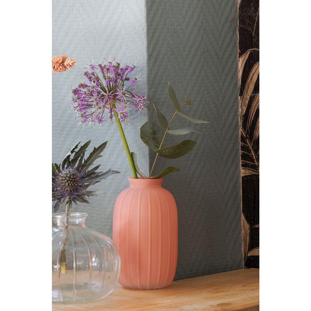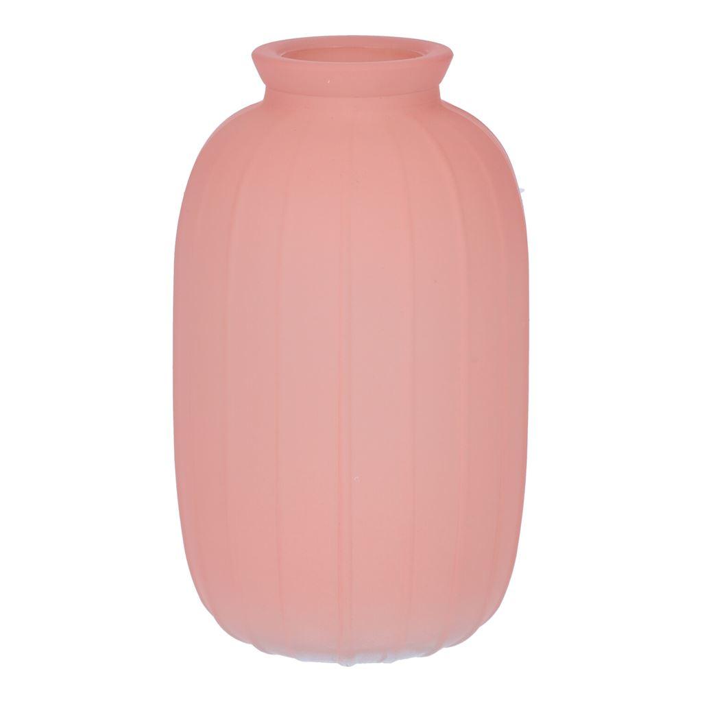 Skleněná dekorativní láhev SILVINA, s drážkami, tmavě růžovo-čirá, 12cm, Ø7cm