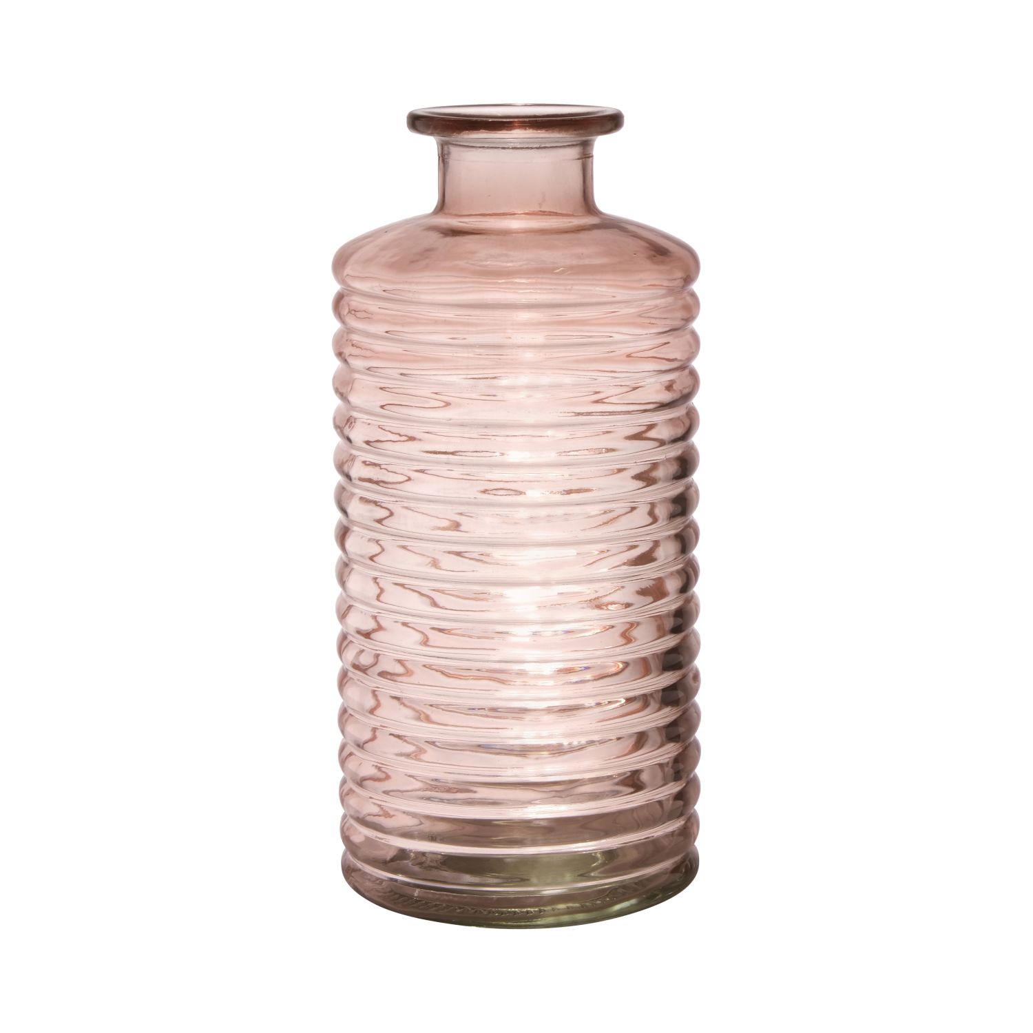 Skleněná dekorativní láhev STUART s drážkami, světle růžovo-čirá, 31 cm, Ø14,5 cm