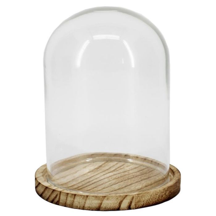 Skleněná kopule DANILLA s mramorovaným dřevěným podstavcem, čirá, 14,5cm, Ø11,5cm