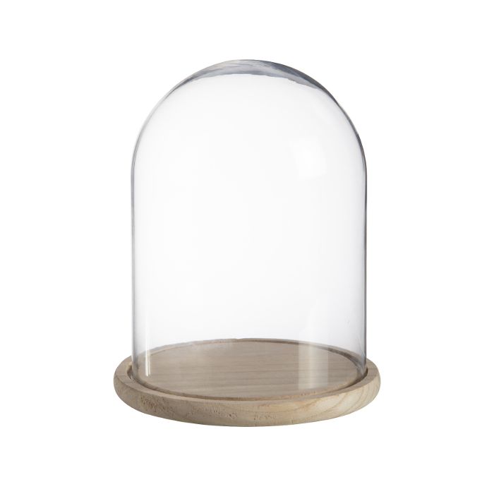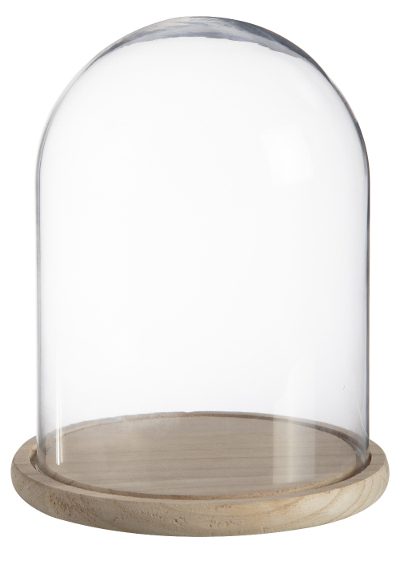 Skleněná kupole SABIKA s dřevěným podstavcem, průhledná, 22cm, Ø17cm