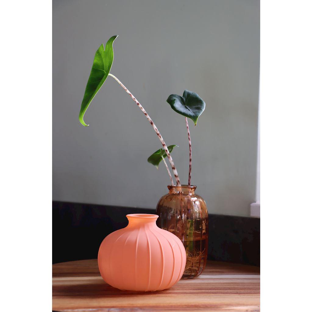 Skleněná láhev ALFHARD s drážkami, matná oranžová, 8,5cm, Ø10,5cm