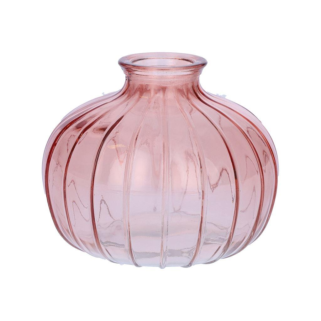 Skleněná láhev ALFHARD s drážkami, tmavě růžovo-čirá, 8,5 cm, Ø10,5 cm