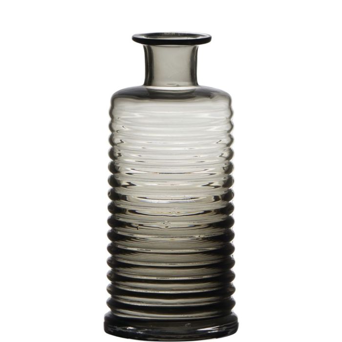 Skleněná láhev STUART s drážkami, šedá-čirá, 21,5cm, Ø9,5cm