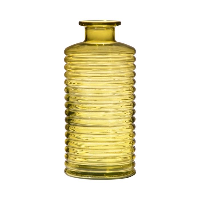 Skleněná láhev STUART s drážkami, žluto-čirá, 21,5cm, Ø9,5cm