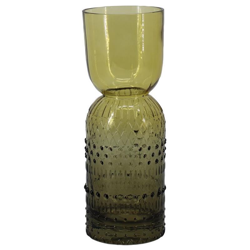 Skleněná stolní váza DESCON s puntíky, koňakově hnědá-čirá, 28,3cm, Ø10,5cm