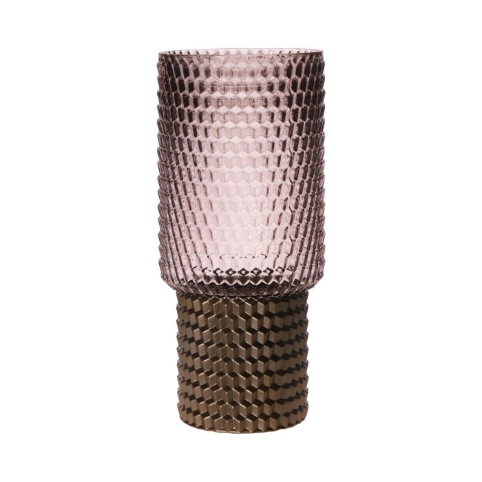 Skleněná váza MARICHU se strukturou, zlato-růžovo-čirá, 27cm, Ø12cm