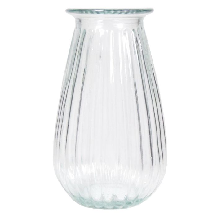 Skleněná váza na květiny DORITA s drážkami, čirá, 21cm, Ø13cm