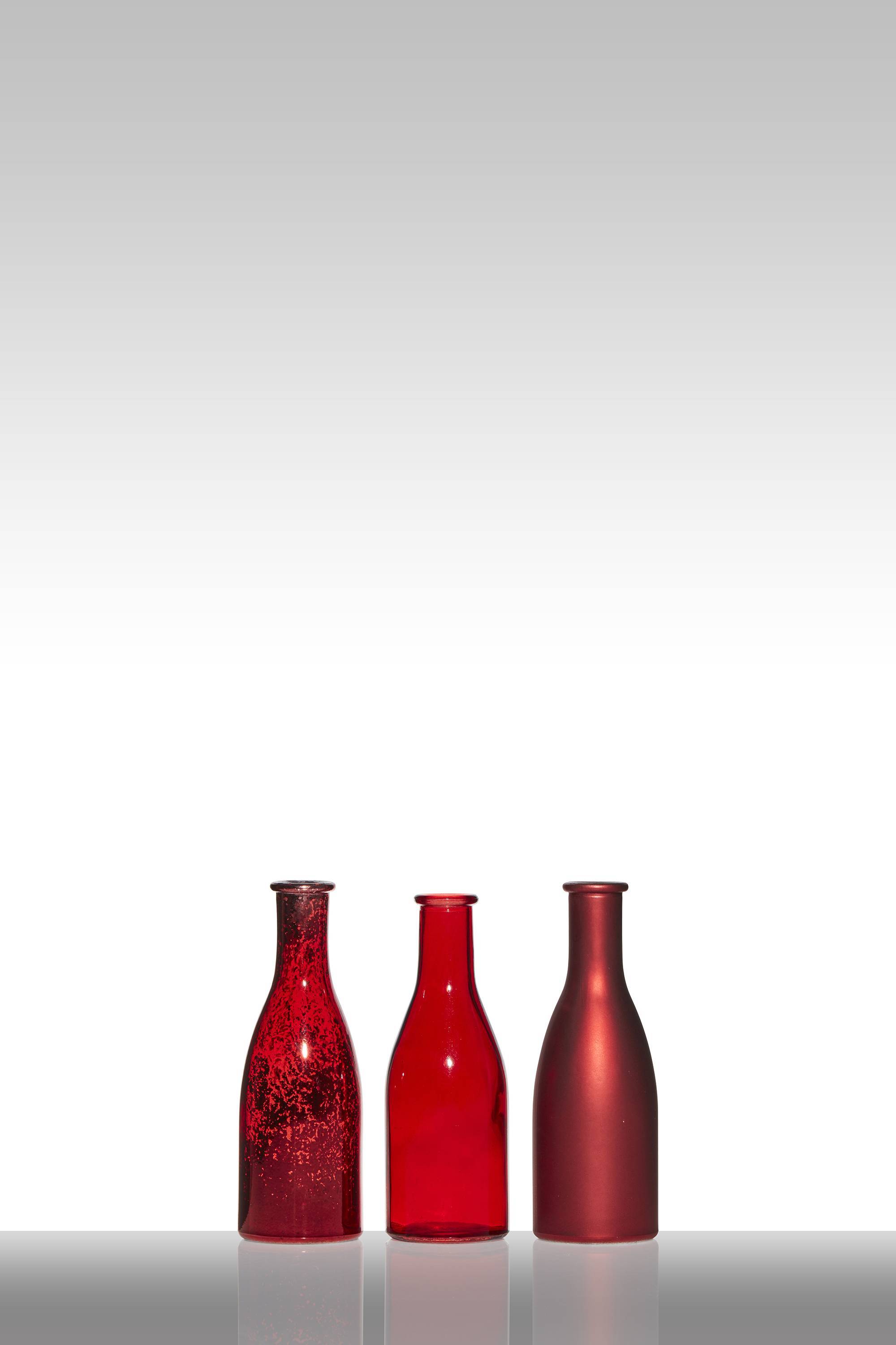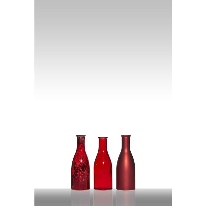 Skleněné lahve ANYA, 3 kusy, červené, 18,5 cm, Ø 6,5 cm