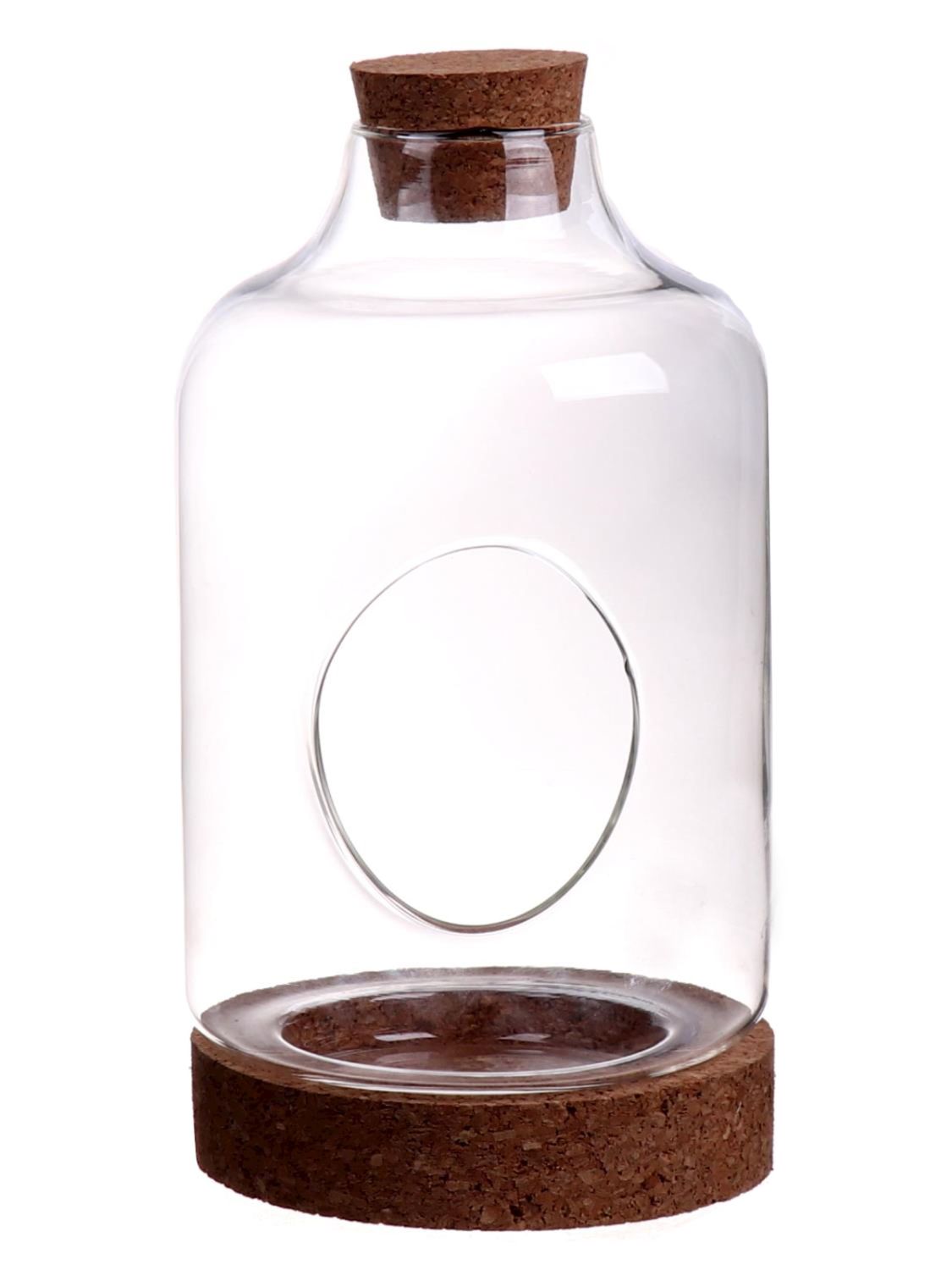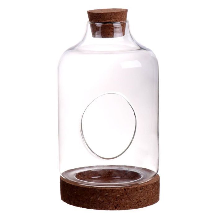 Skleněné terárium KUKKA, korkové víko, korkový podstavec, čiré, 23cm, Ø12cm