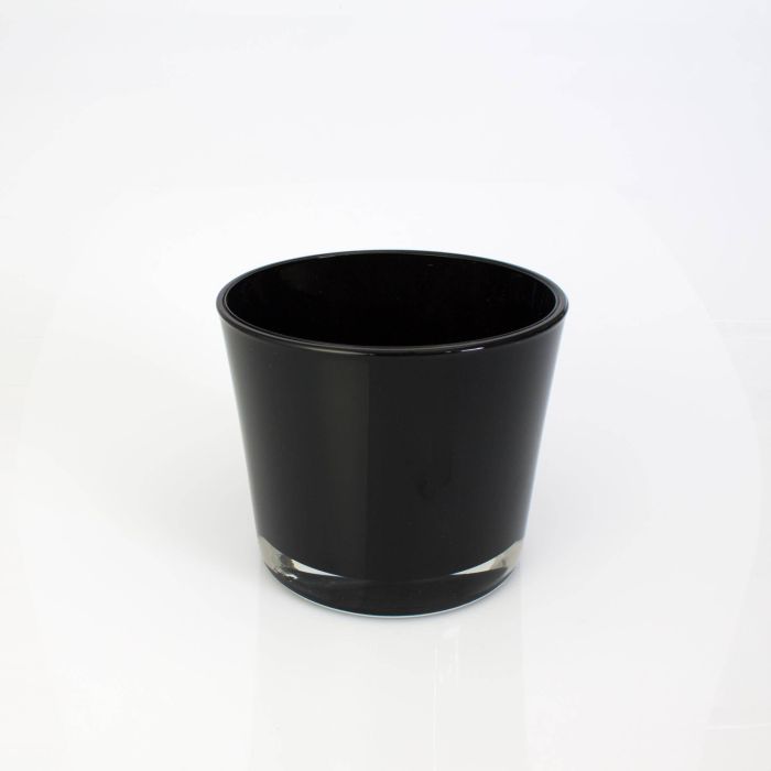 Skleněný květináč ALENA, černý, 12,5 cm, Ø 14,5 cm