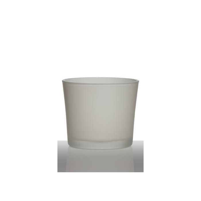 Skleněný květináč ALENA FROST, bílý mat, 12,5 cm, Ø 14,5 cm