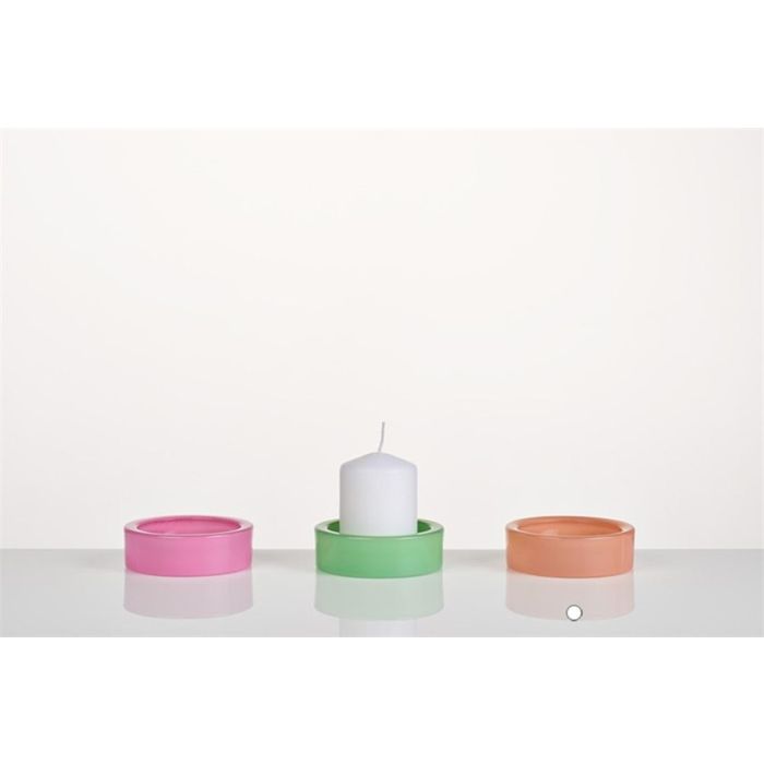 Skleněný talířek na svíčku ARBENITA, broskvový, 3 cm, Ø9,5 cm