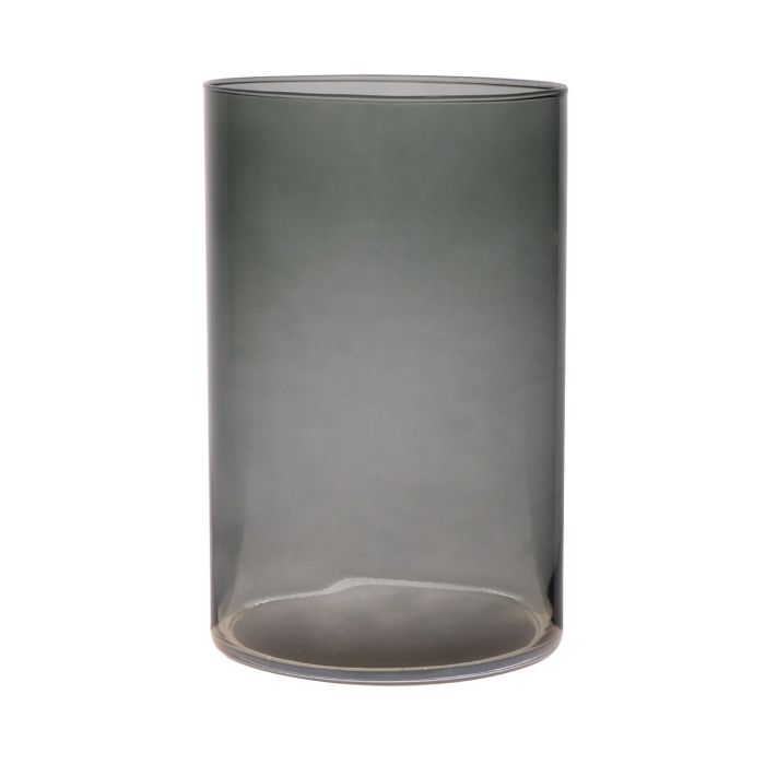 Skleněný váza válec SANYA EARTH, tmavě šedá-čirá, 21cm, Ø14cm