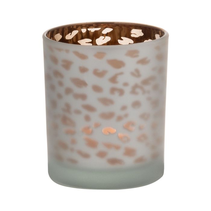 Sklenice na čajovou svíčku SENGA, leopardí vzor, matně zlatá, 8cm, Ø7cm
