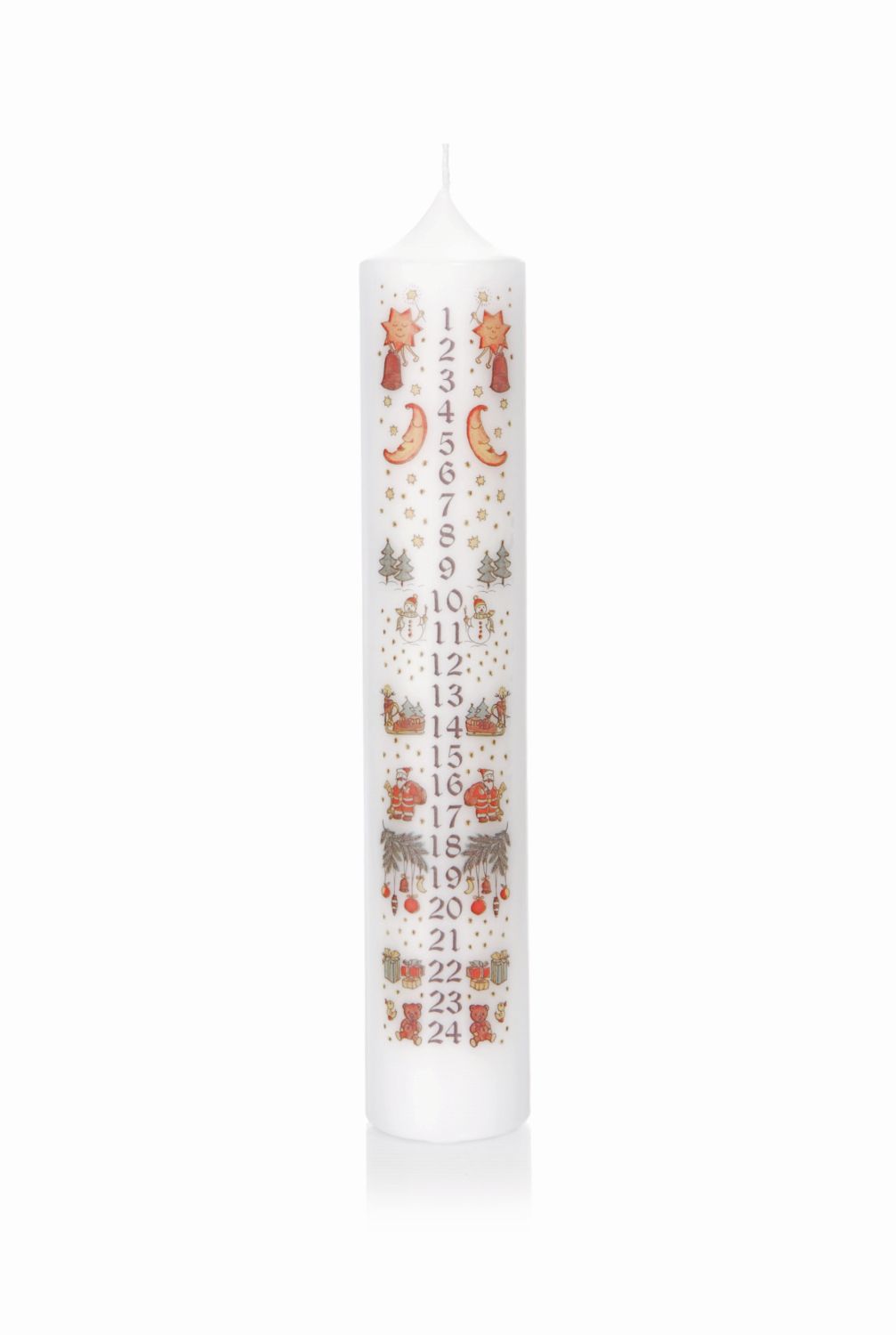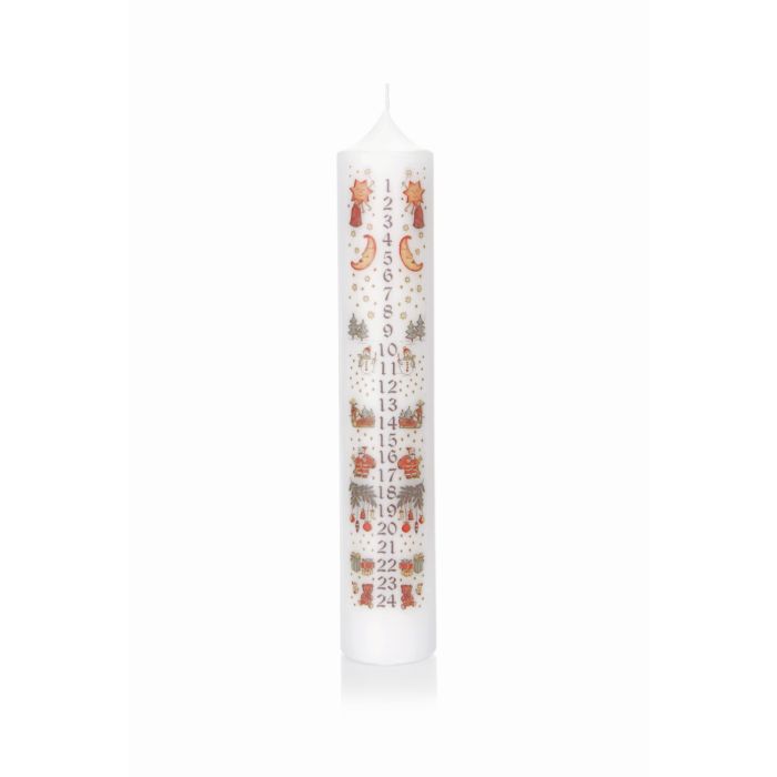 Sloupková svíčka adventního kalendáře LAMBERTINA, fototisk adventních dnů, bílá barva, 26,5 cm, Ø5 cm - vyrobeno v Německu