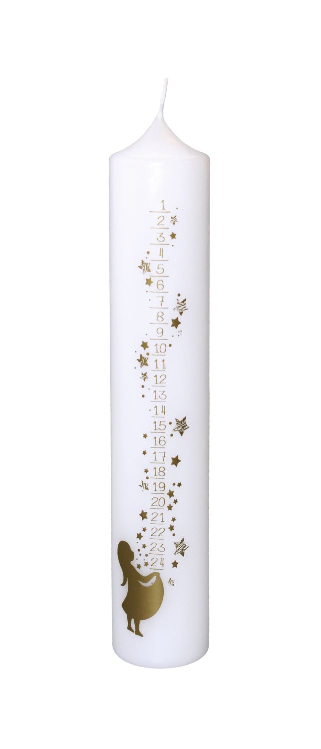 Sloupková svíčka do adventního kalendáře KEEVA, sítotisk adventních dnů, bílo-zlatá, 26,5cm, Ø5cm - Vyrobeno v Německu