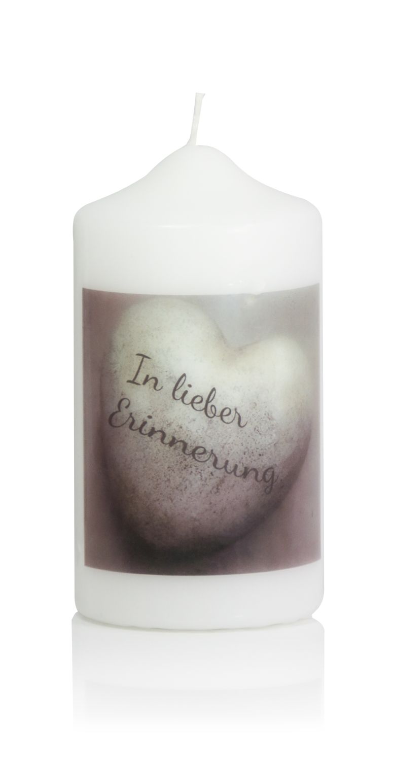Smuteční svíčka WILHELMINE, na milou vzpomínku, fototisk, zdobená, bílo-černá, 15cm, Ø7,8cm - Vyrobeno v Německu