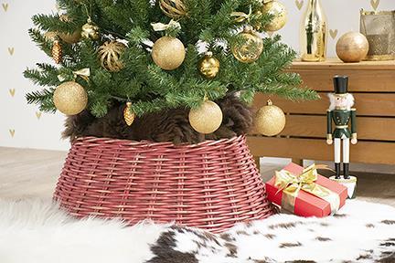 Stojan na vánoční stromek Ratanový koš MACARIO, červený, 26cm, Ø65cm