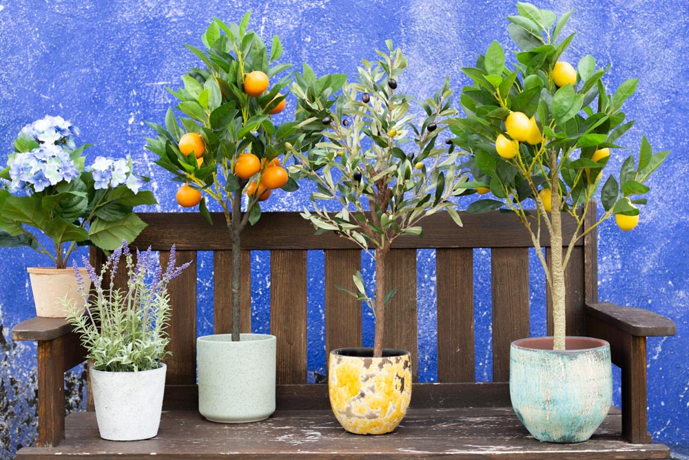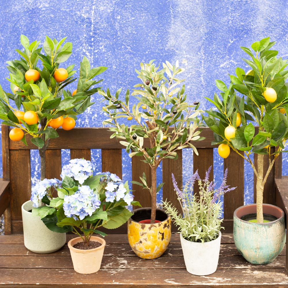Jižní ovoce a levandule! Obrázek často vídaný v jižních oblastech. Přeneste kouzlo Středomoří do svého domova! Okamžitě získáte trochu té prázdninové atmosféry. Malé citronovníky a pomerančovníky vypadají tak opravdově, že ve vás opravdu vzbudí chuť na čerstvé ovoce. Ať už chcete vyzdobit jídelnu nebo obývací pokoj, naše středomořské umělé květiny vnesou do každé místnosti dokonalou atmosféru. Nakupte si vzhled!