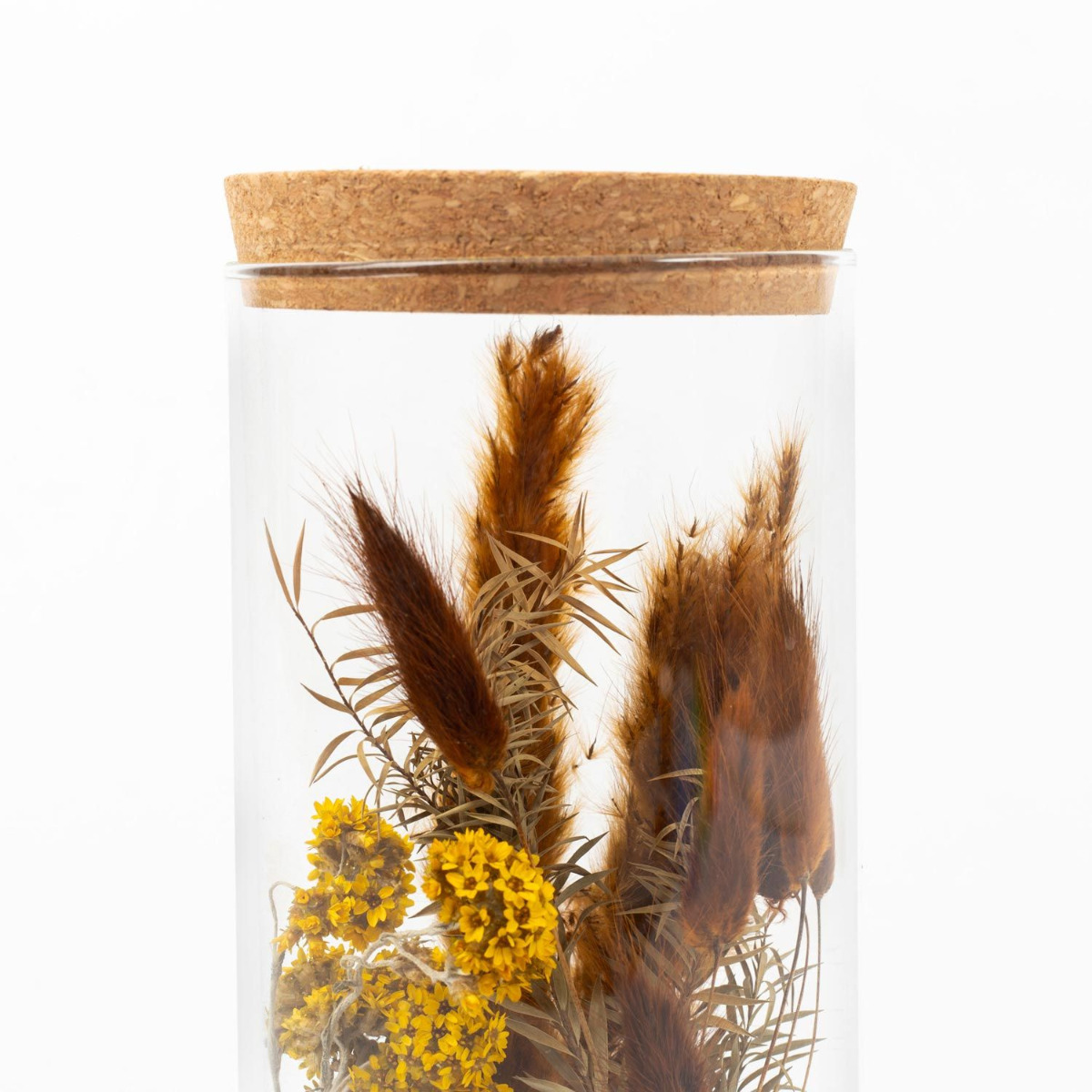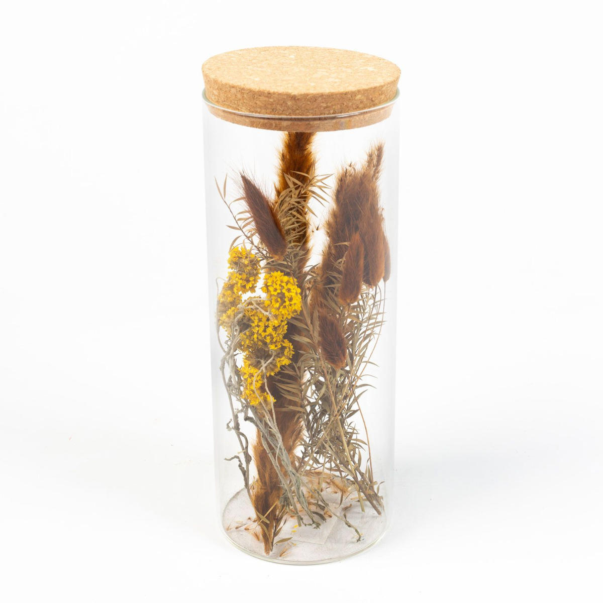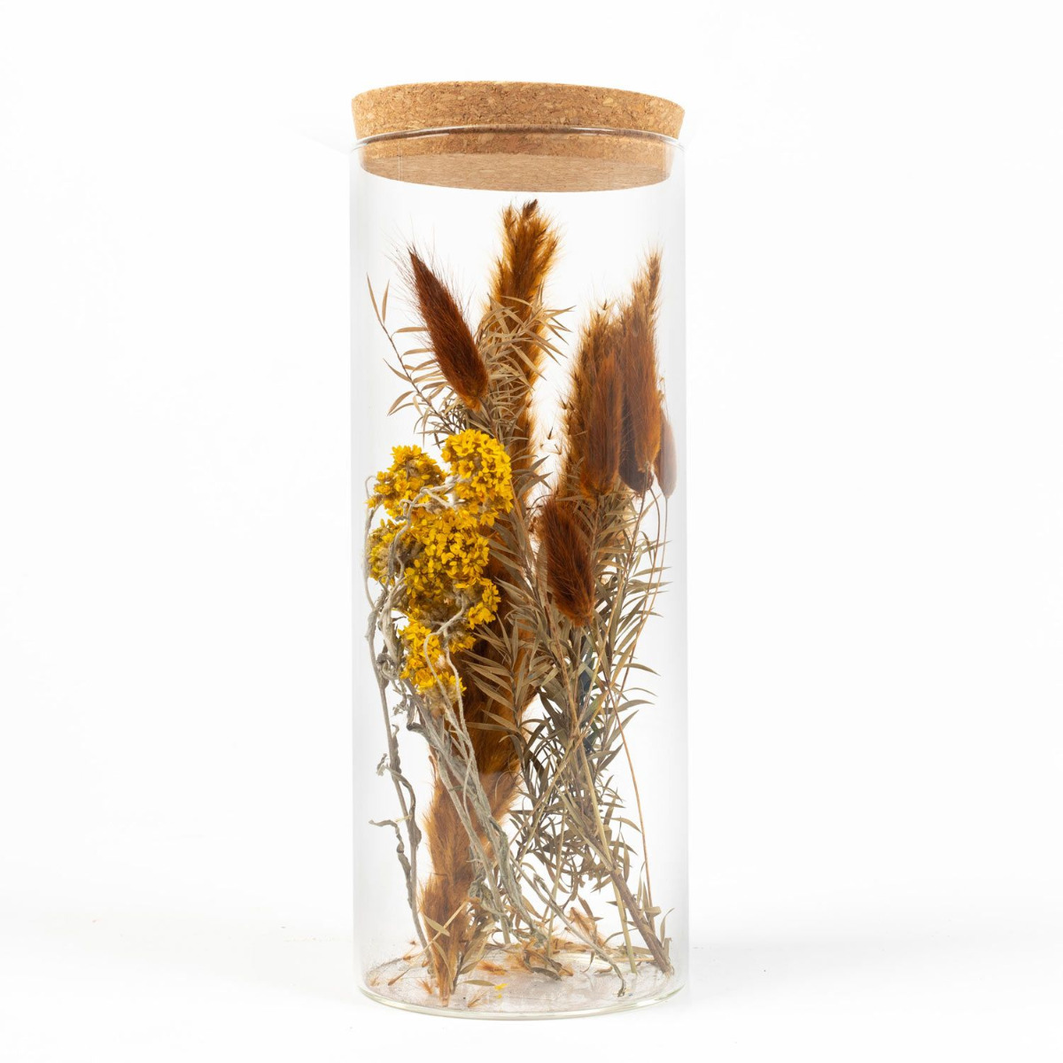 Sušené květiny ve skle LARA, hnědo-žlutá, 25cm, Ø10cm