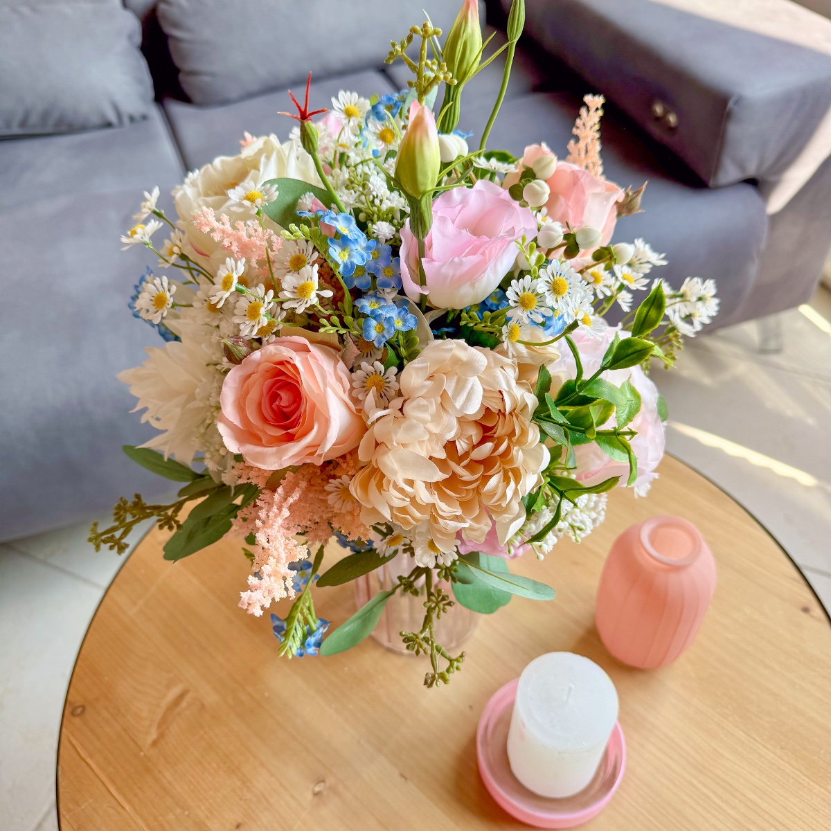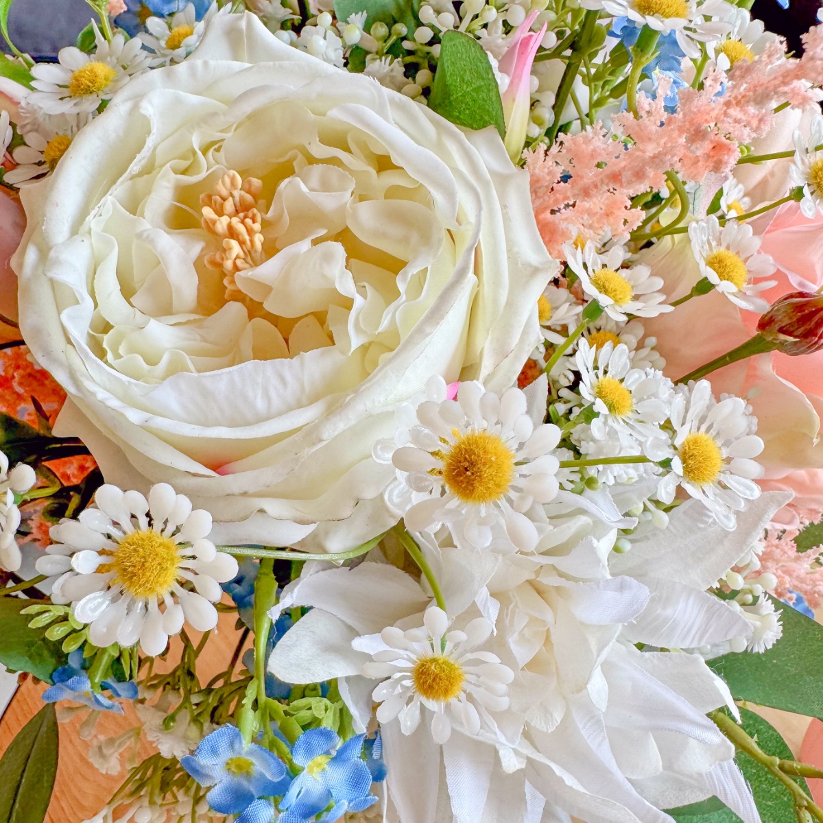 Květina elegance – kytice tvých snů pro výjimečný den! Ušlechtilá svatební kytice, která spojuje nadčasovou eleganci s romantickou jemností. Nádherné bílé orchideje Cymbidium a Phalaenopsis tvoří srdce této kreace a dodávají kytici exkluzivní, luxusní vzhled. Jemné růžové pivoňky přidávají hravý nádech, zatímco klasické bílé růže symbolizují čistotu. Jemná gypsophila doplňuje aranžmá a dodává mu lehkost a harmonii. Nechte se okouzlit touto svatební kyticí a udělejte svůj den nezapomenutelným! Kupte si tento vzhled!