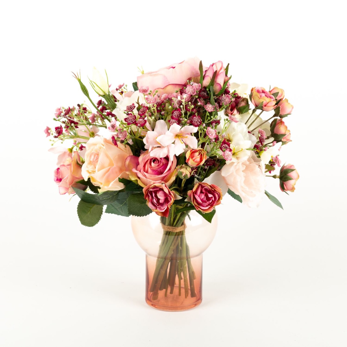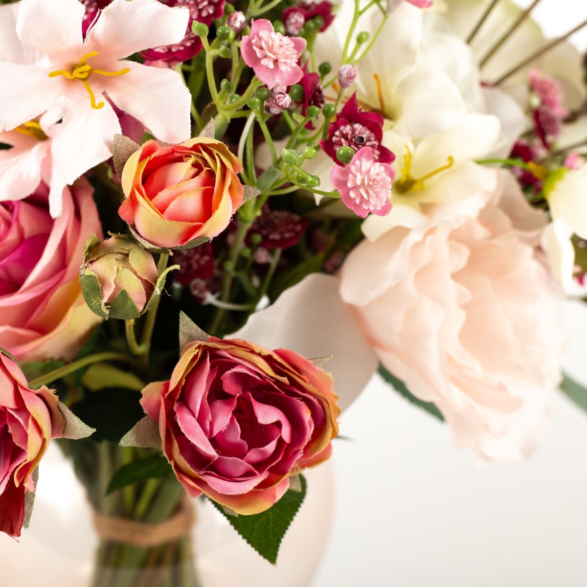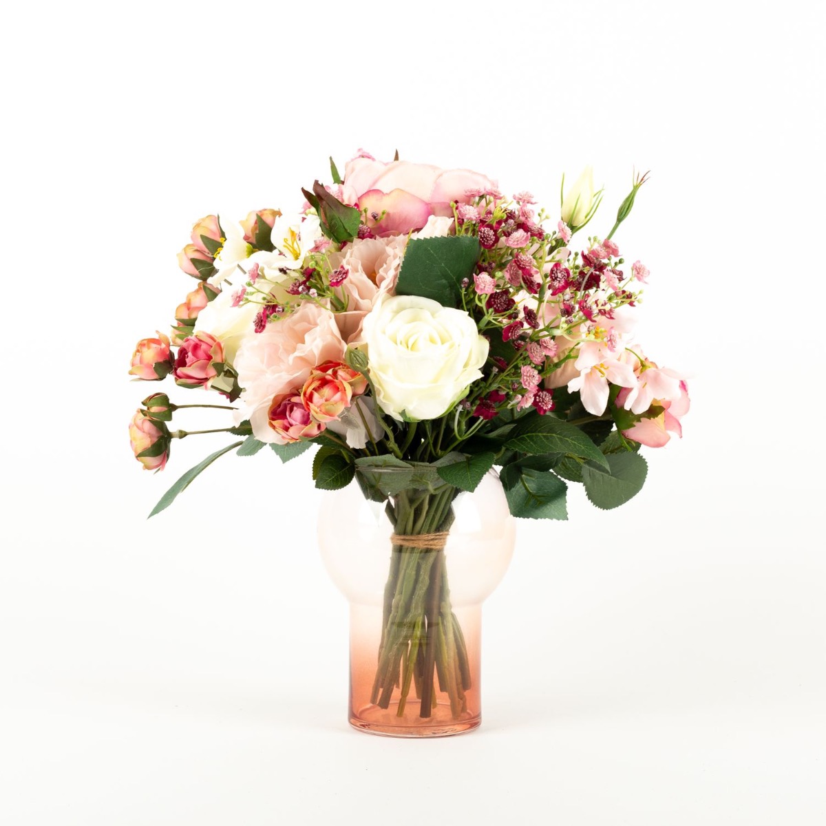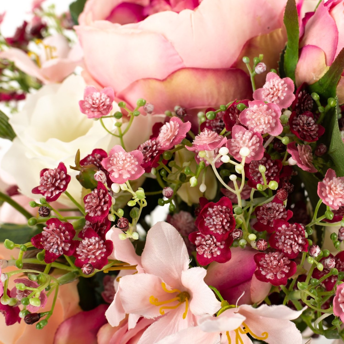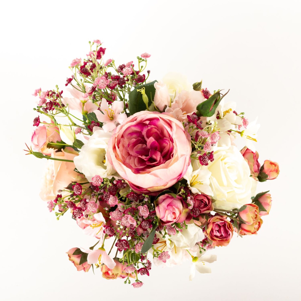 Romantická kytice! Vaše vlastní svatba je v životě něčím výjimečným. Svatební kytice v tom hraje zvláštní roli, ale skutečné květiny bohužel nevydrží příliš dlouho a po krátké době začnou vadnout. Replika z umělých květin může tento okamžik zachytit a těšit po dlouhou dobu. To byl i případ naší zákaznice Hanan, která si přála, abychom znovu vytvořili její svatební kytici. Díky četným fotografiím originální kytice jsme mohli vytvořit dokonalou repliku z růží, gypsophily a lisianthu. Hanan se velmi těšila, až ji bude brzy držet v rukou. Také hledáte umělou svatební kytici? Nakupte si vzhled!