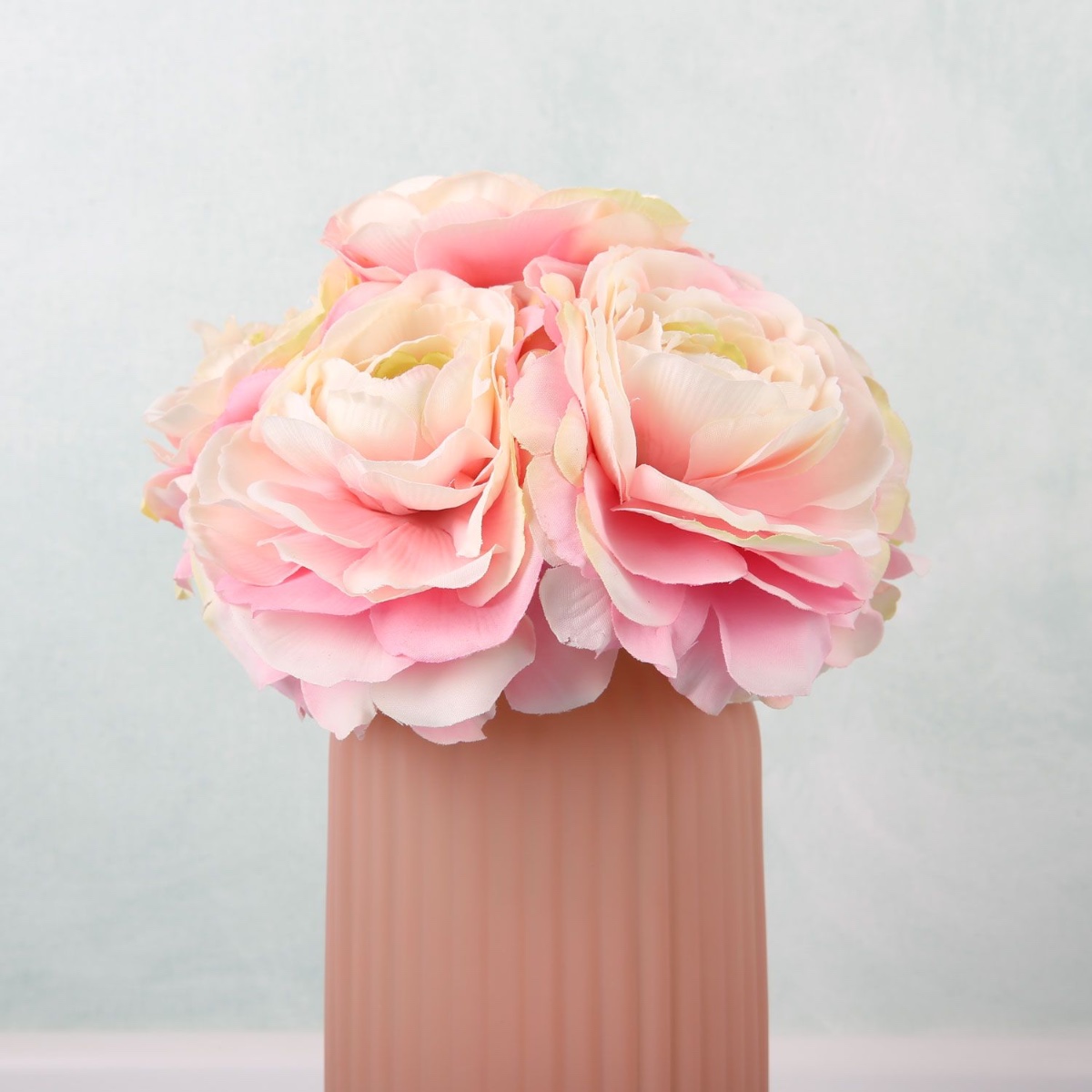 Růžová a krémová! To je romantika vyjádřená barvami. Tato malá, ale jemná svatební kytice se skládá ze sedmi krásných ranunculusů s barevným přechodem od růžové po krémově bílou. Kompaktní technika vázání dává ranunculusům uspořádané a symetrické uspořádání, které si udrží svůj tvar i na té nejdivočejší svatební hostině. Nakupte si tento vzhled!