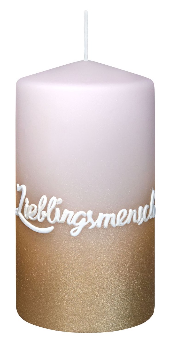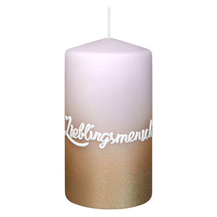 Svíčka s nápisem JARDENA, oblíbená osoba, světle růžovo-zlatá, 13cm, Ø7cm, 52h