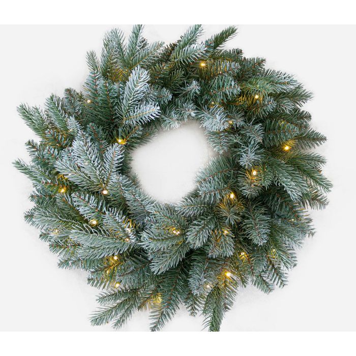 Textilní jedlový věnec BUFFALO, modrý, zmrzlý, LED diody, Ø60cm