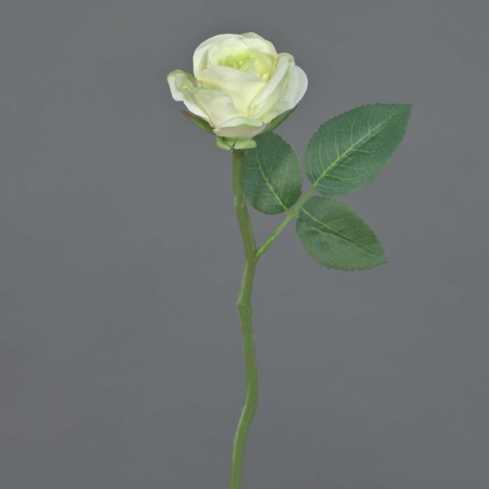 Textilní květina růže GABI, krémovo-zelená, 25cm, Ø5cm