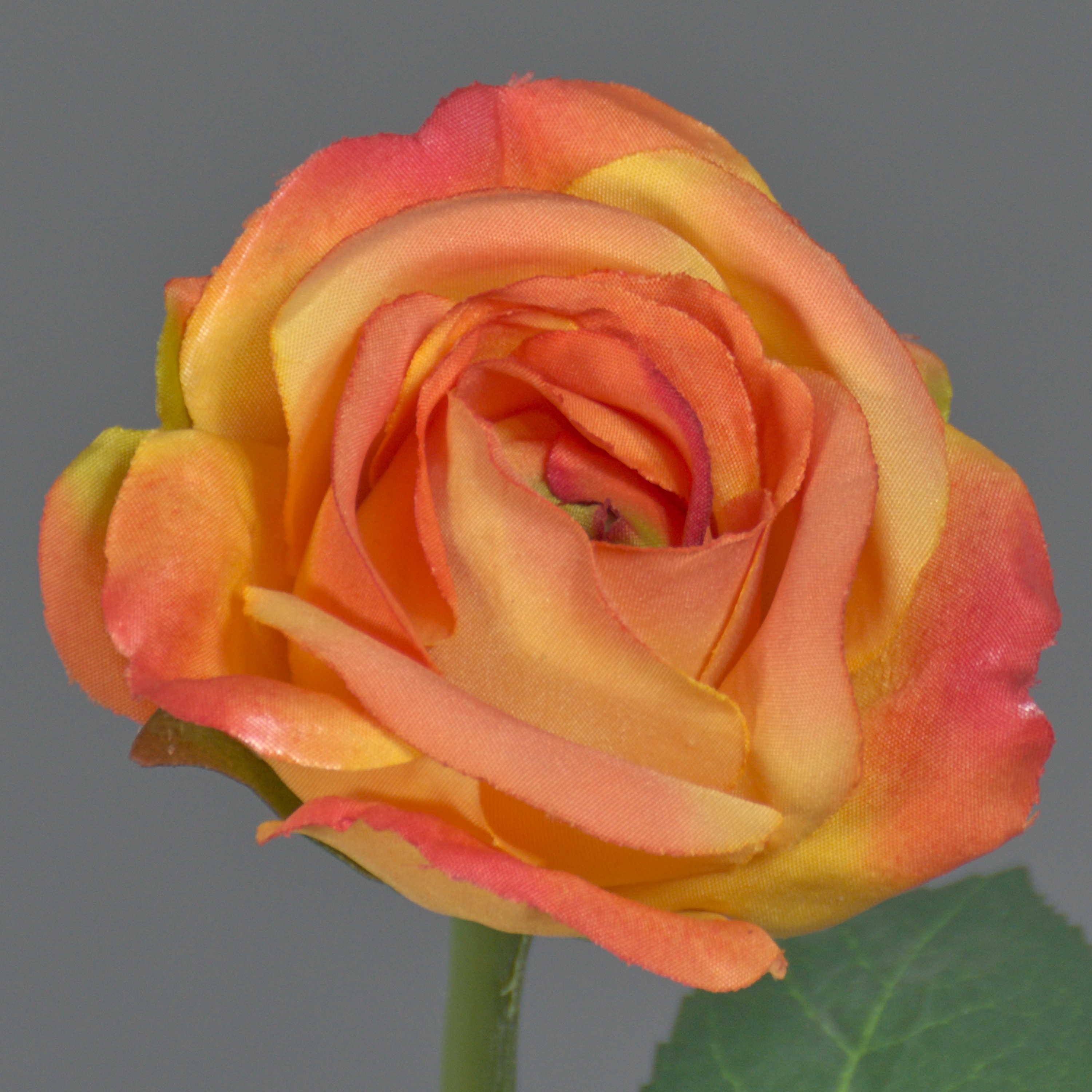 Textilní květina růže GABI, oranžová, 25cm, Ø5cm