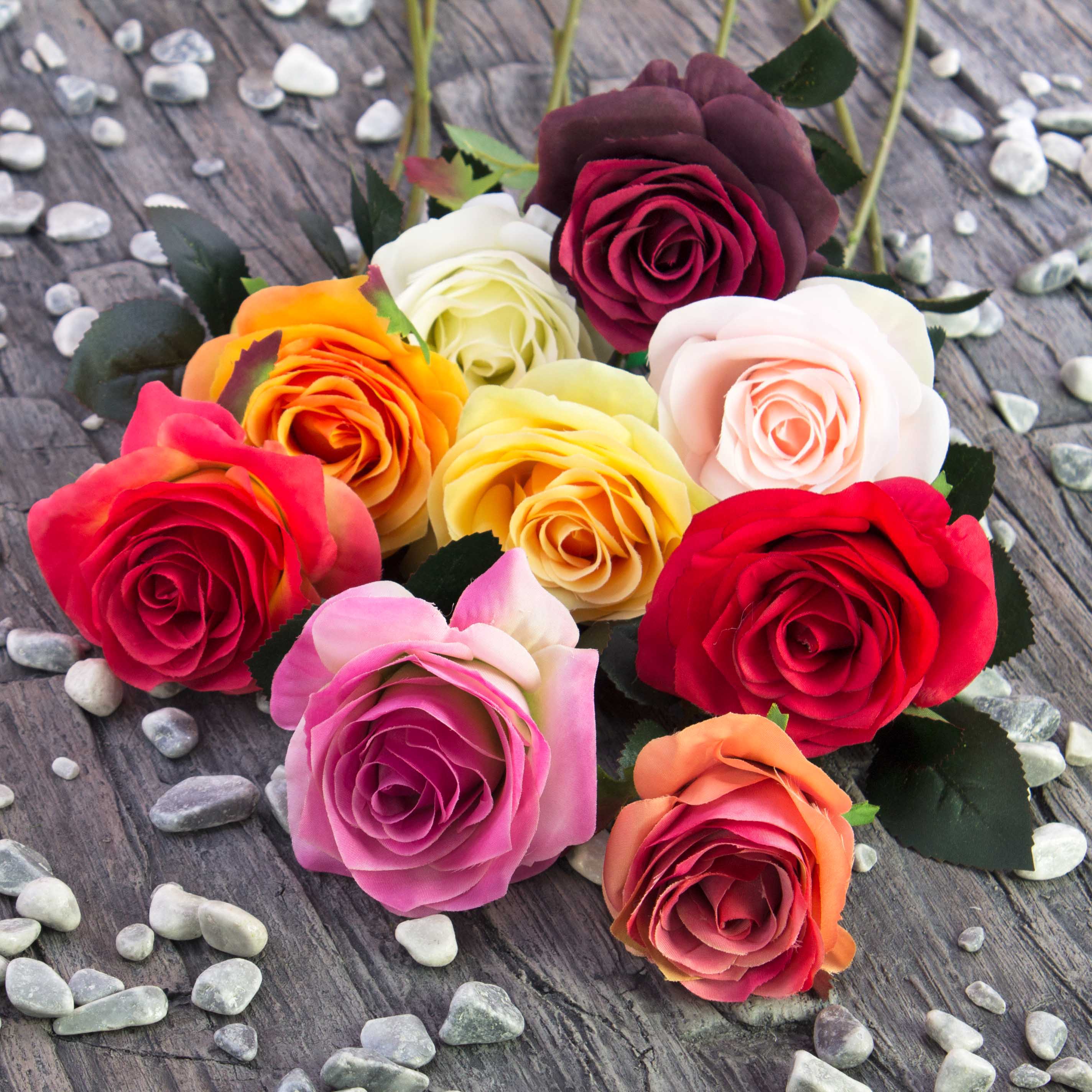 Textilní květina růže SIMONY, žluto-oranžová, 45cm, Ø8cm
