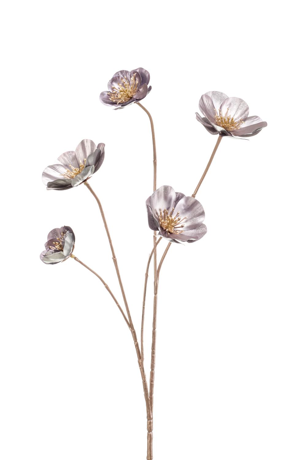 Textilní květina vánoční růže NIVIA, metalická fialová, 70cm