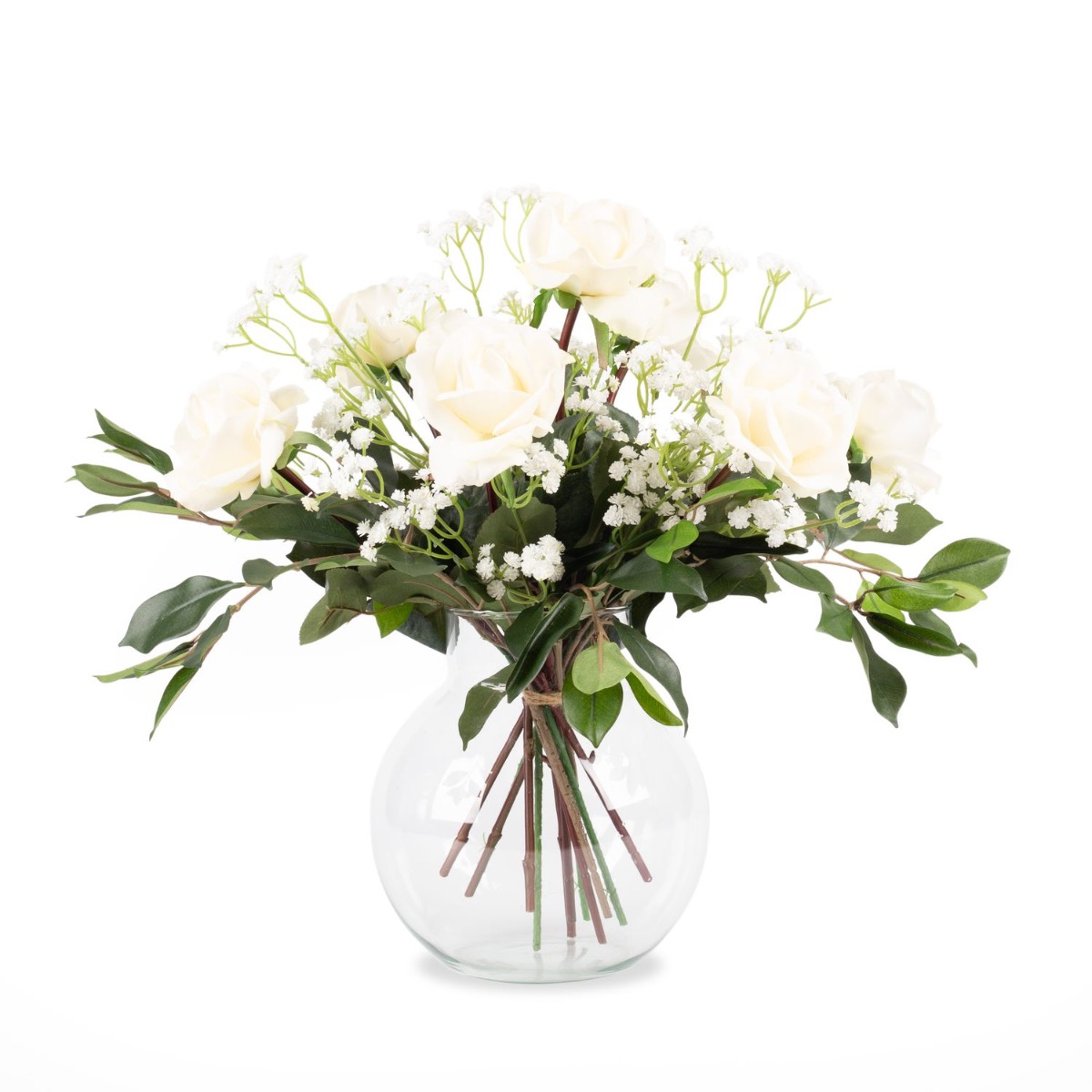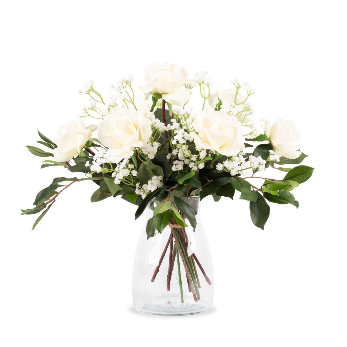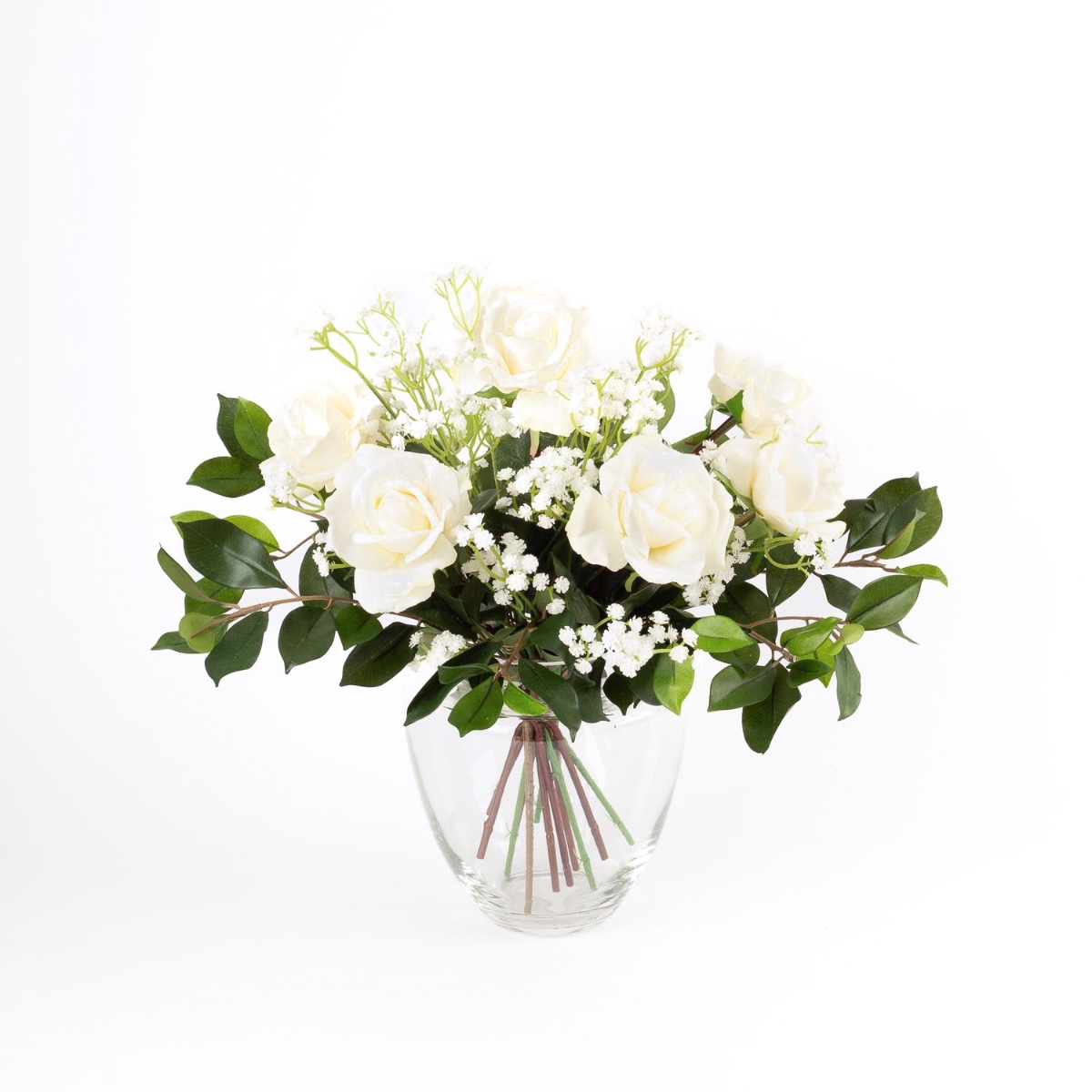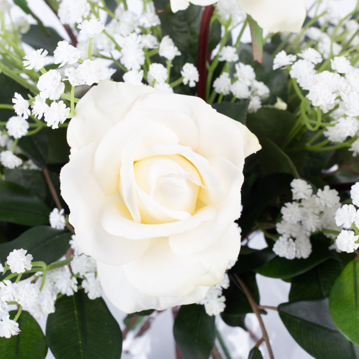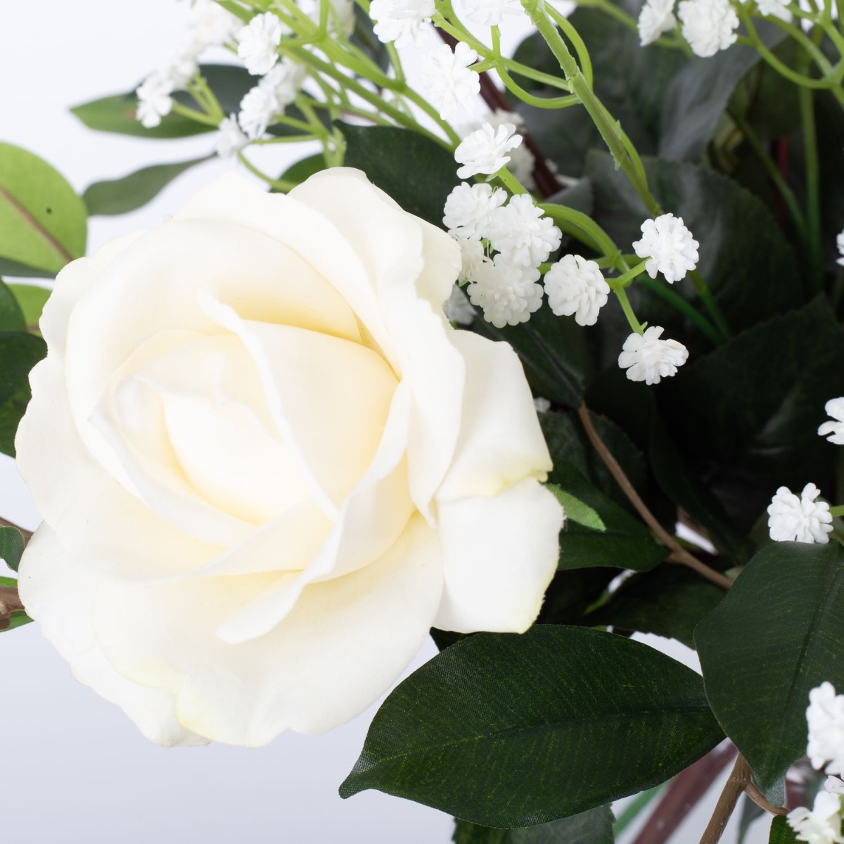 Textilní kytice růží AMELIE, šater, bílá, 45cm, Ø40cm