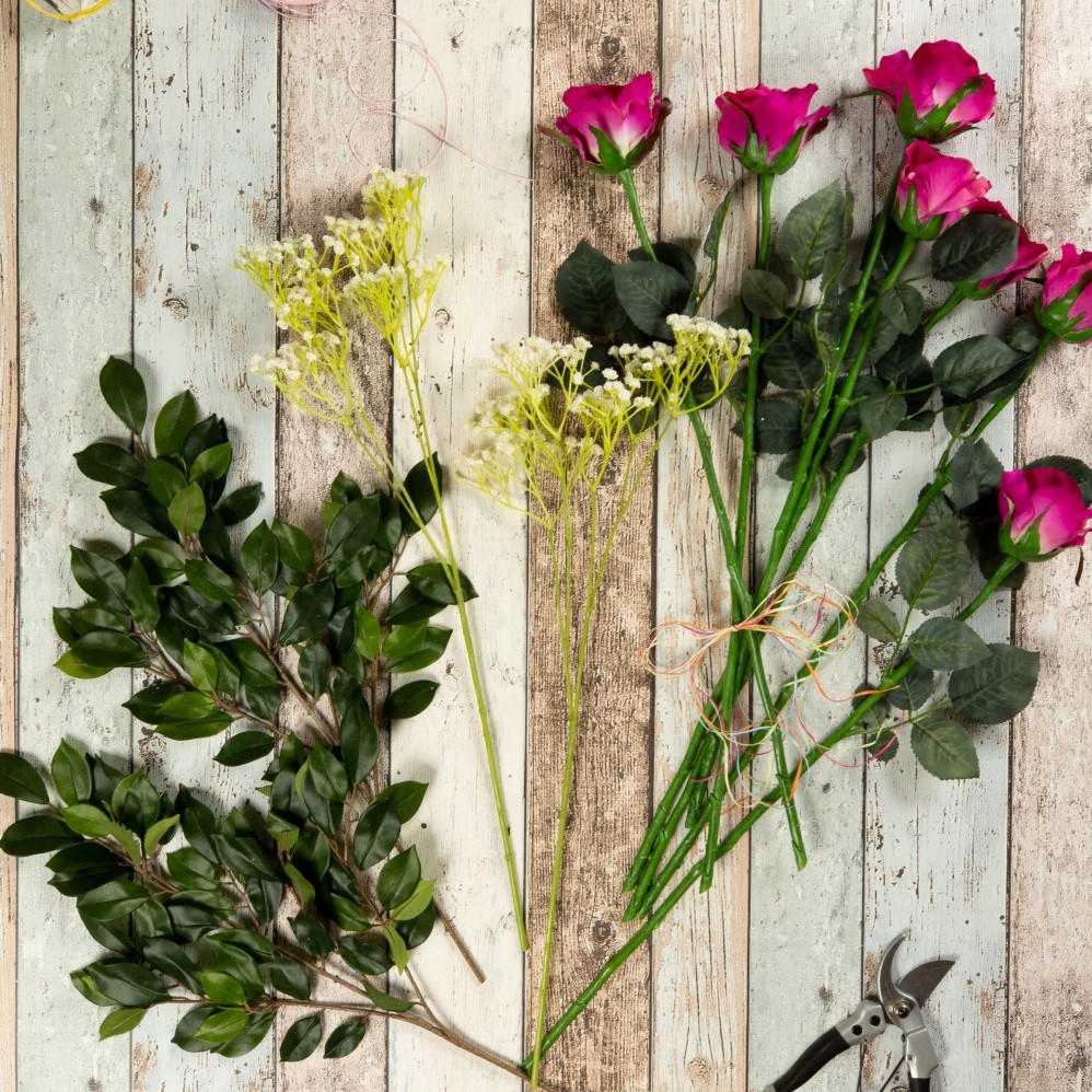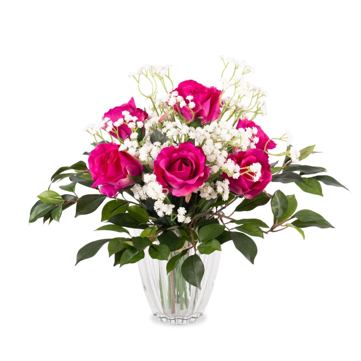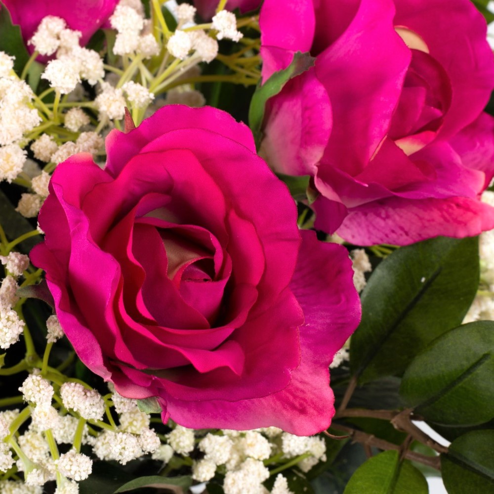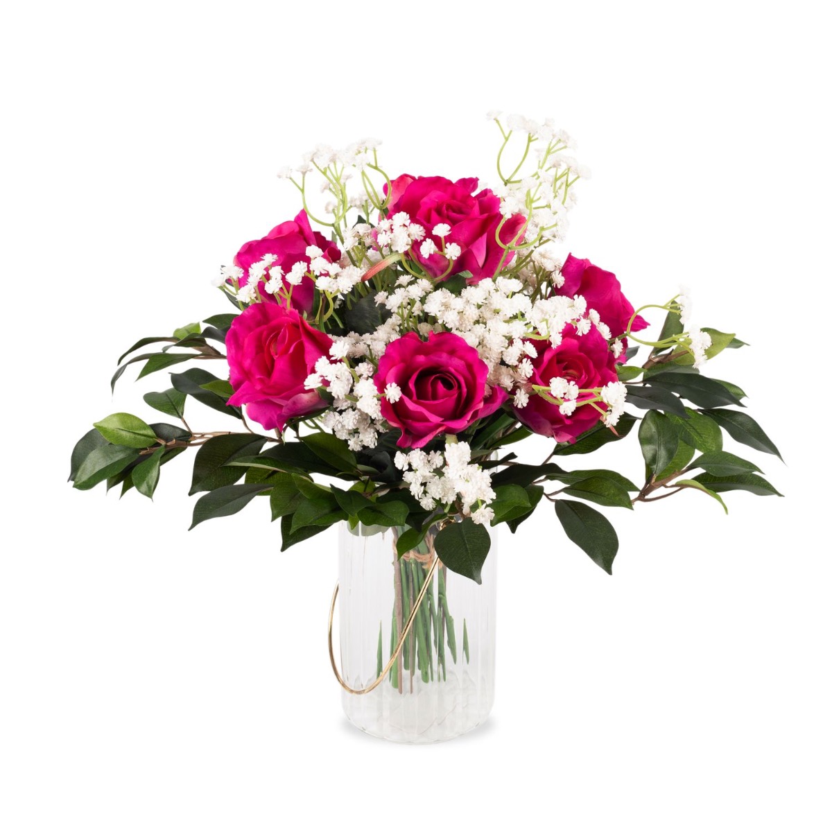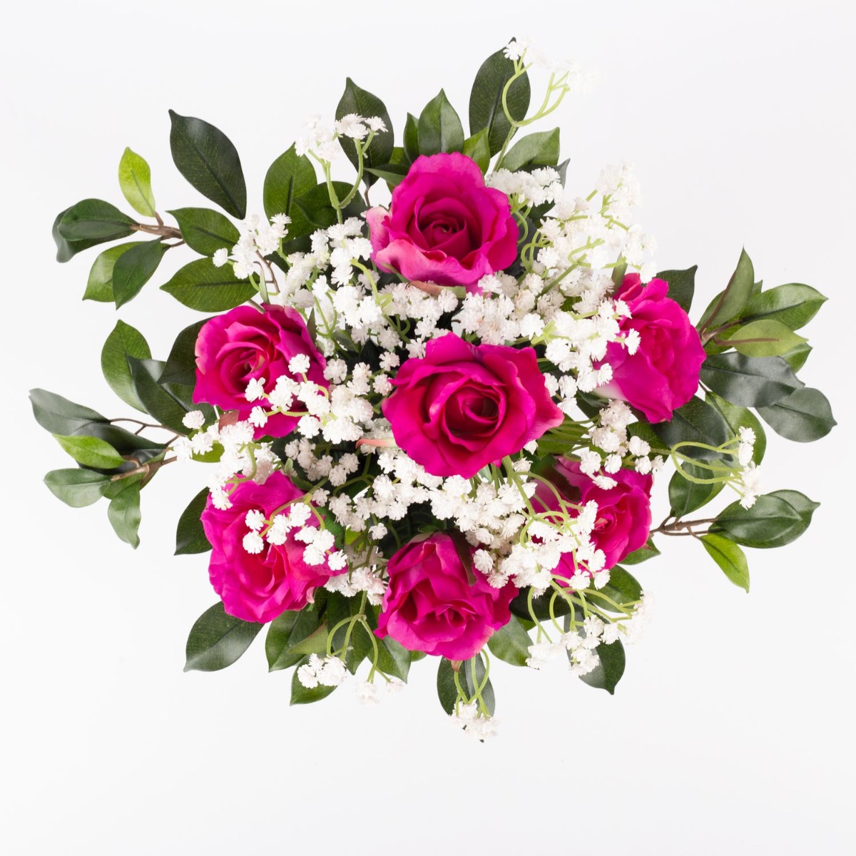 Textilní kytice růží ELLI, šater, růžová, 35cm, Ø30cm