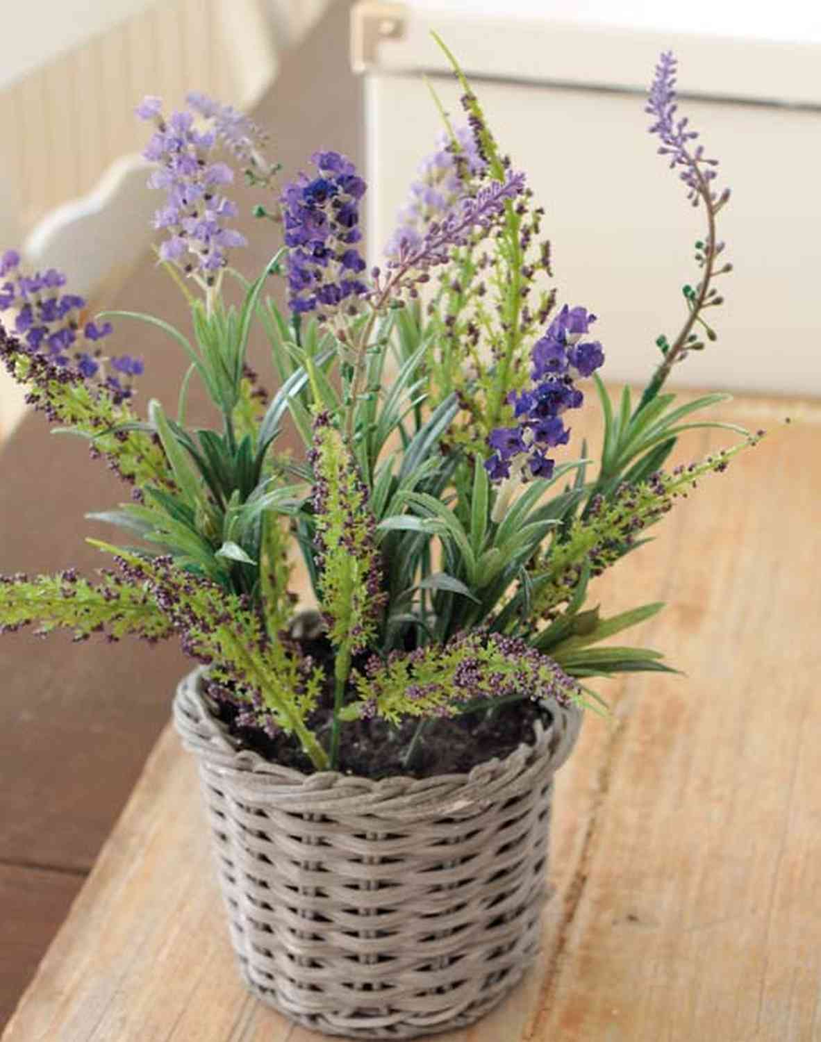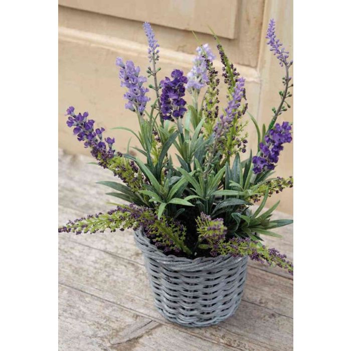 Textilní levandule KIRSA v proutěném košíku, fialová, 30cm, Ø1-2cm