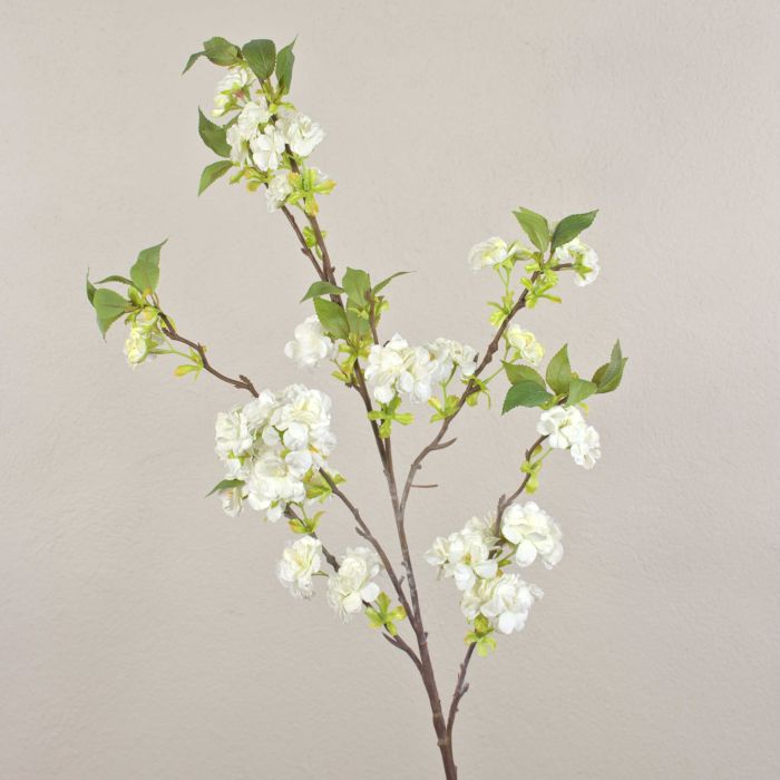Textilní třešňová větev MATSUDA s květy, smetanově bílá, 130cm