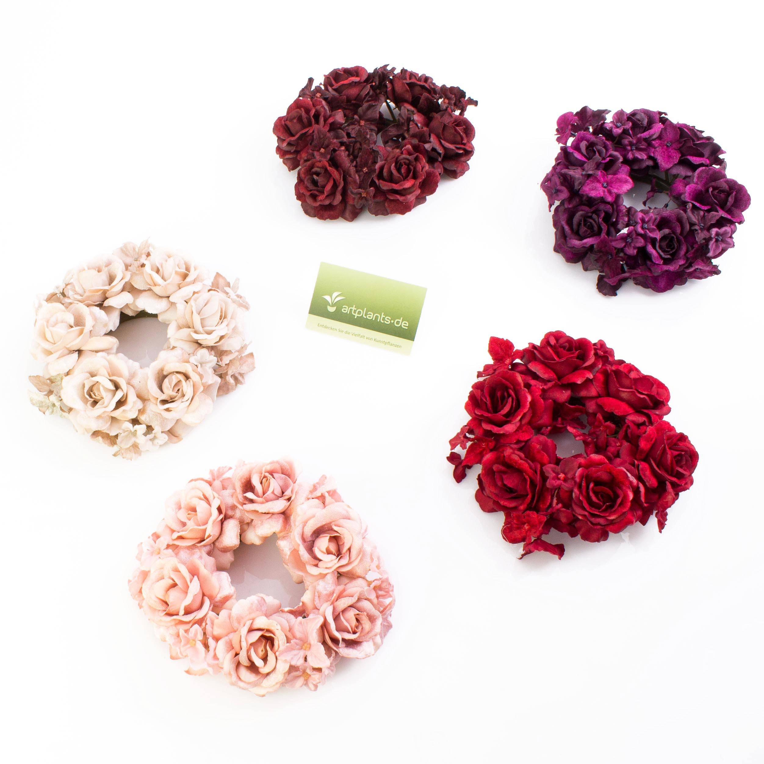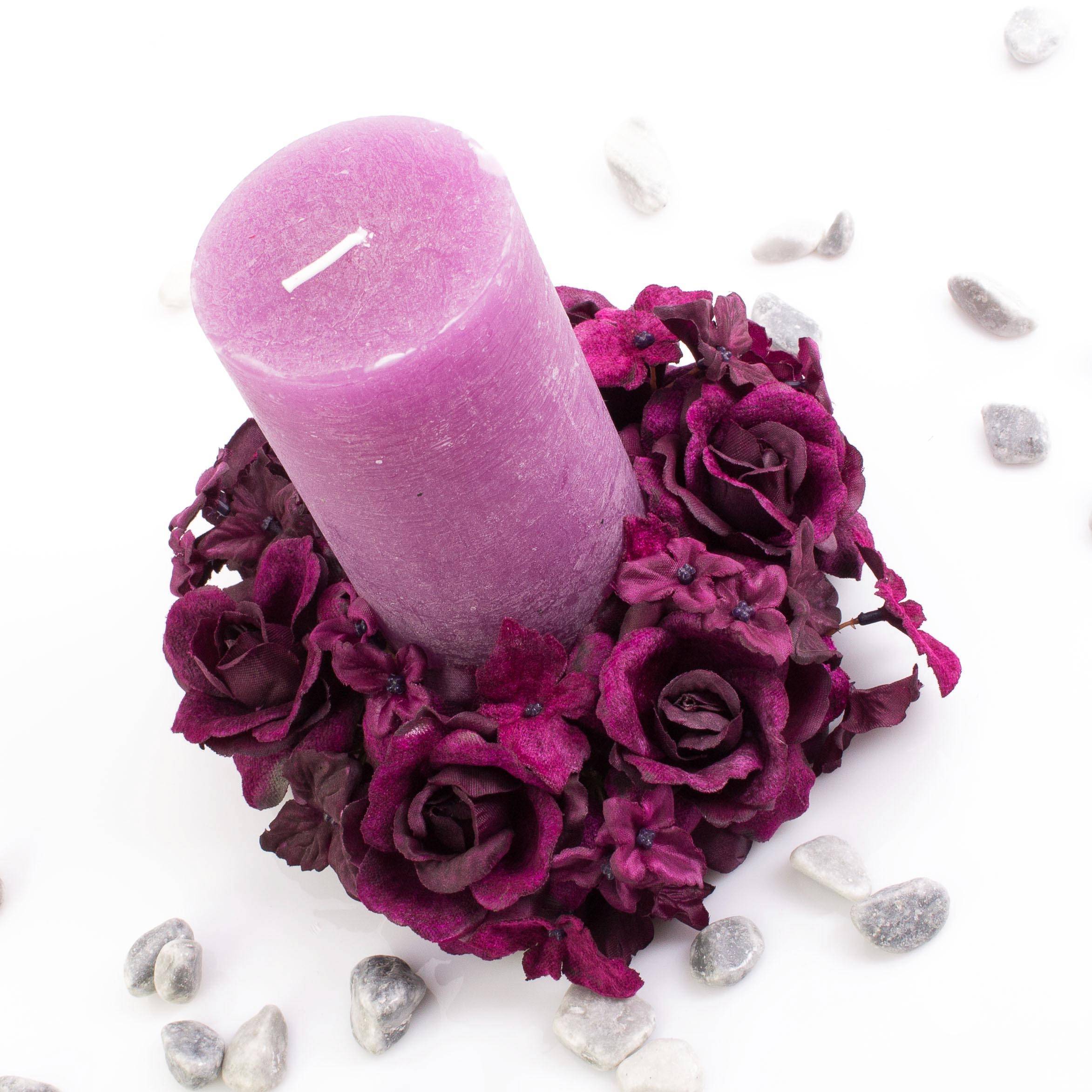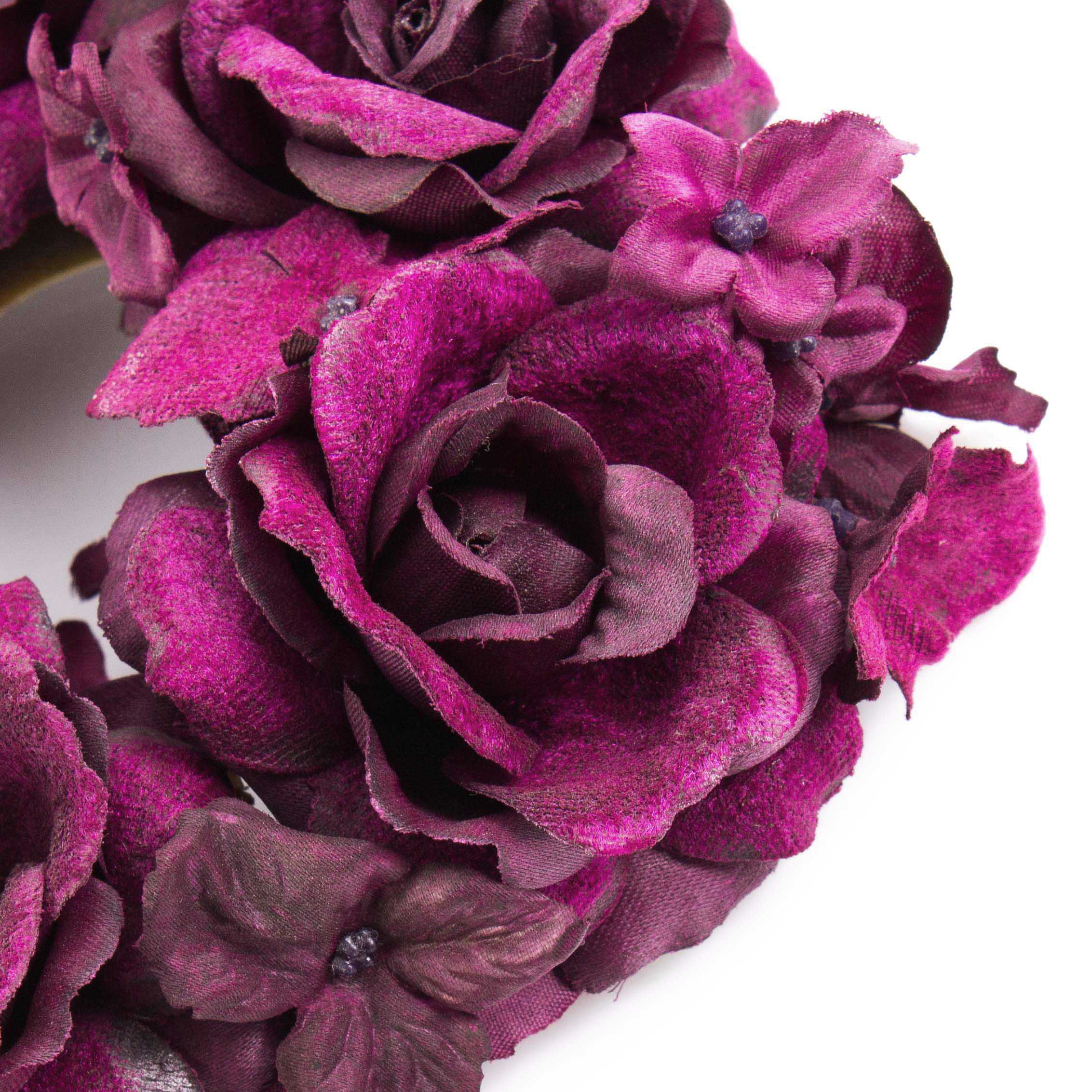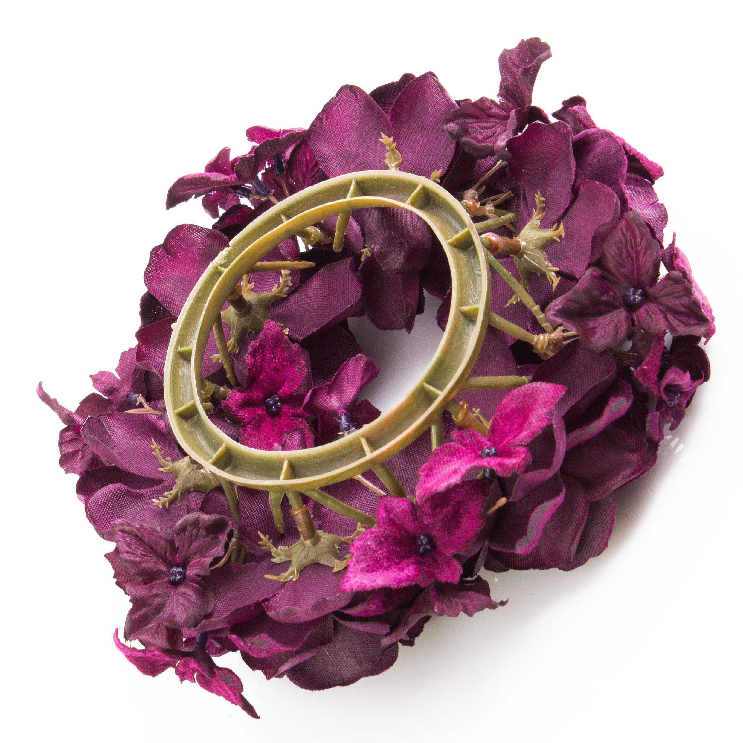 Textilní věnec na svíčku INGA, růže, hortenzie, fialová, Ø15cm